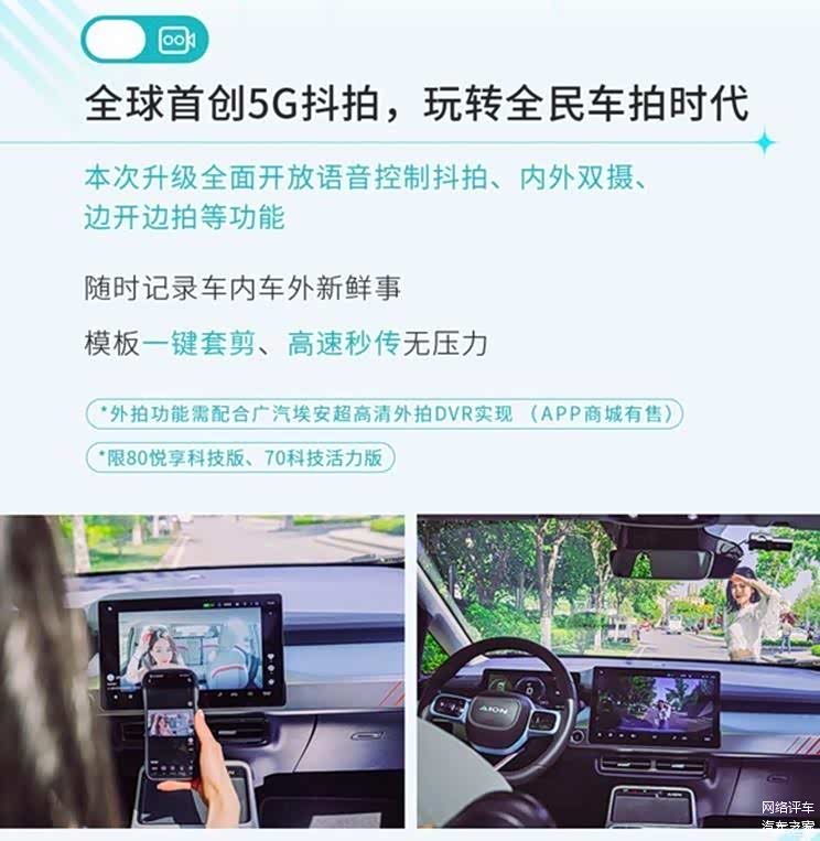 1、5G抖拍,本次升级全面开放语音控制抖拍、内外双摄、边开边拍等功能,随时记录车内车外新鲜事。