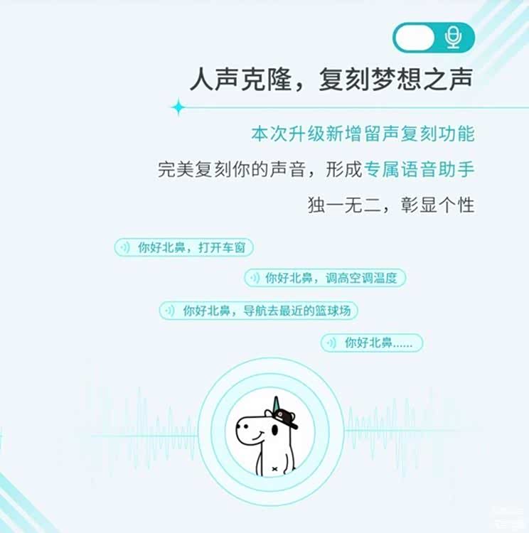 4、人声克隆,本次升级新增留声复刻功能,可将你自己或家人朋友的声音复刻进车机,形成专属语音助手。花10分钟的时间就可以训练出用户的完整音库,并将任意文本转换成用户的声音。