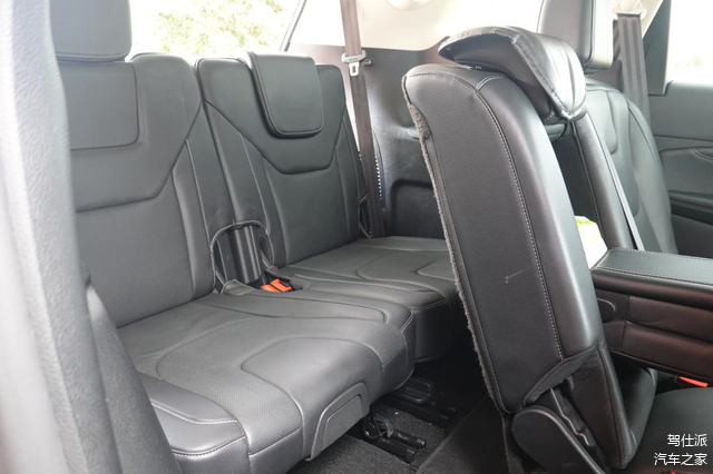 好在作为顶配车型,2017款锐界在舒适性装备上不会吝啬,不仅座椅、方向盘可以电动调节,第三排座椅也支持电动升降,前排座椅加热/通风/记忆都没有缺失,第二排座椅除了能加热座垫外,福特还设计了相对高成本的折叠中央扶手,高度和质感比直接躺平的那种翻折扶手更适用,加上本身锐界的座椅布局带有类似路虎发现的剧院式排列,每一排的视野都算良好,座垫柔软度也偏向日产的美式沙发,所以坐在后排听着SONY音响厚重的音乐,长途旅行时的惬意还是料很足。