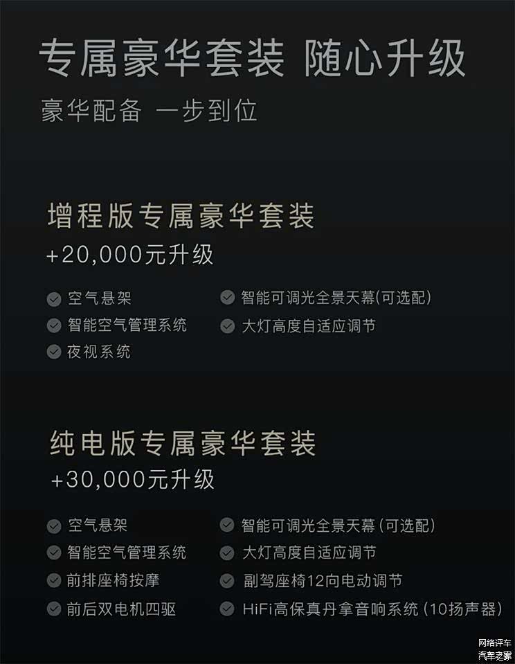 这次岚图7月30日宣布新的购买权益直接一刀将空气悬挂给砍掉了,势必让岚图潜在的客户望而生畏了,因为预售的时候只需要5000就能抵扣2000元/3000元的选装包含有空气悬架、夜视系统、智能可调光全景天幕、大灯高度自适应调节、智能空气管理系统;纯电版则有空气悬架、智能可调光全景天幕、大灯高度自适应调节、智能空气管理系统、高保真丹拿音响、前后双电机四驱、副驾座椅12向电动调节、前排座椅按摩。这种舒适性的配置可是必不可少的,也是豪华的核心关键点。