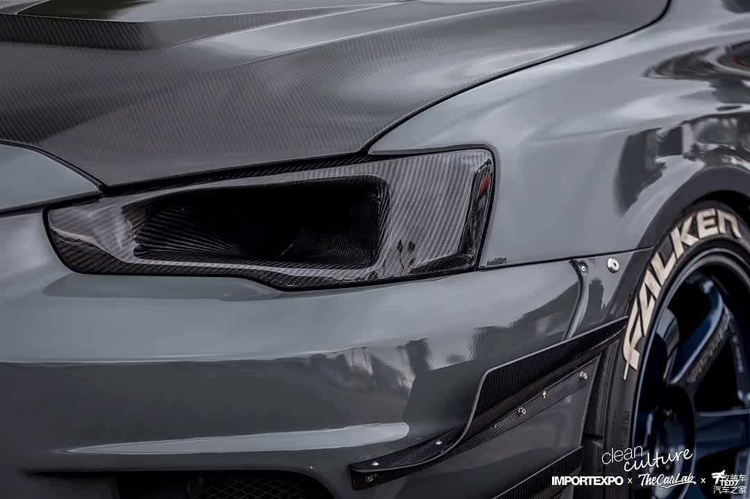另外,细心的车迷或许早已发现,这辆EVO的左侧大灯已经被拆掉,换上了碳纤维材质的边框,空气可以更加顺畅的输送到引擎舱内。远远看去,真的变成了"独眼龙"。
