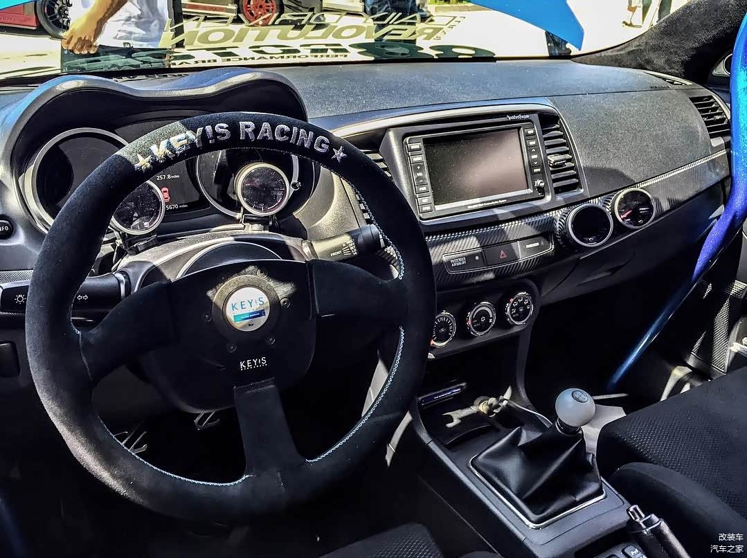 EVO这种强调驾驶的性能车,内饰上则按照功能性来进行改装,Keys Racing方向盘和Cusco排挡头给车主良好的驾驶手感,加宽的车内后视镜保证车主能随时留意到后方情况,Cusco 7点式防滚架在提升车辆安全性能的同时,也能在一定程度上提高车身刚性。