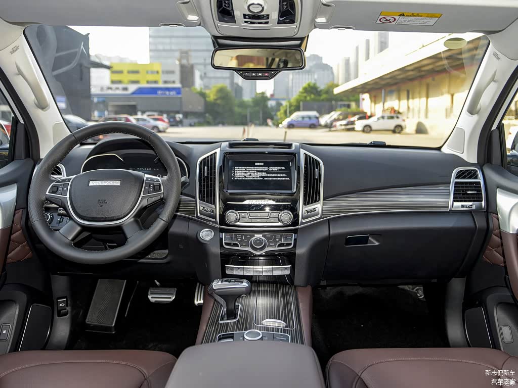 内饰部分,新款车型已经亮相了,但是设计上并没有太大的变化,只是中控屏幕增大,H9的中控饰板造型编辑比较喜欢,首先是木纹的纹理,看上起比较典雅,同时暗灰色的颜色也不会特别老气,如果真的是那种黄色木纹,这车真就老了十岁。