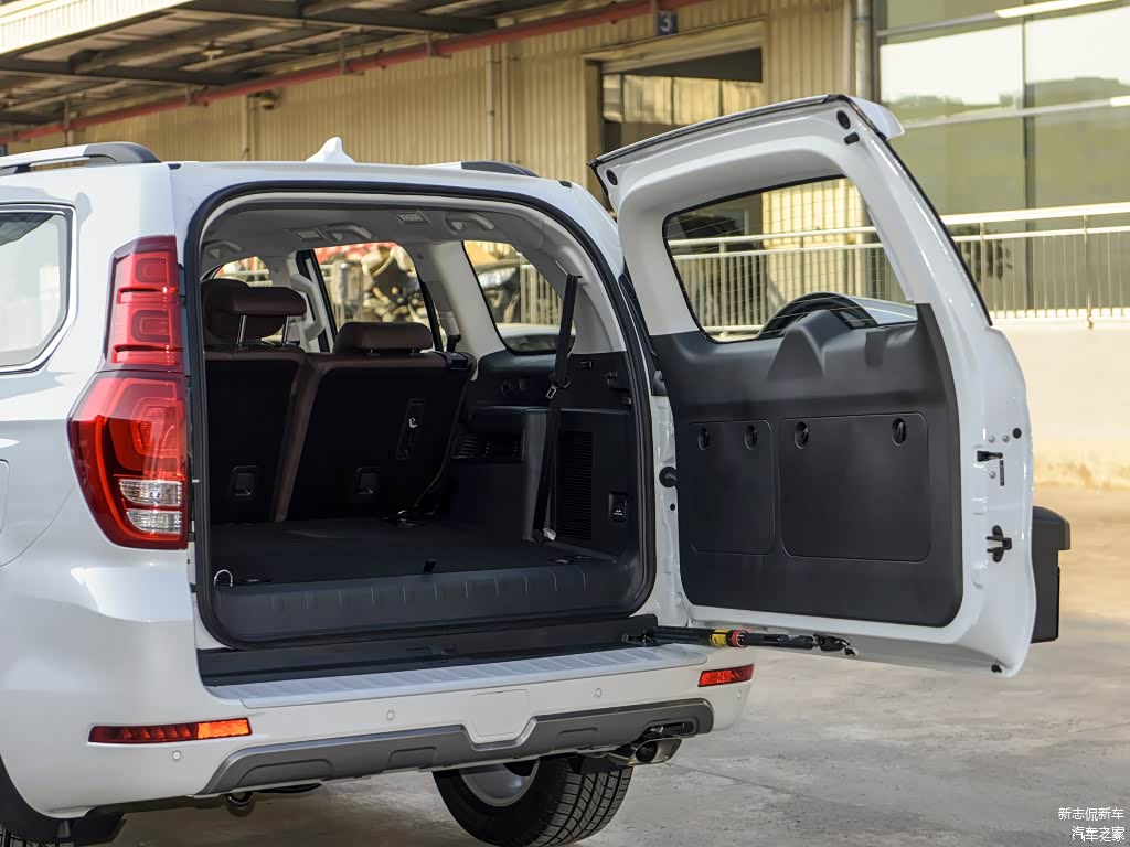 车身侧面,哈弗H9可以选择背负式备胎和底挂式备胎,背负式车型的长宽高为5090*1926*1900,两种车型的轴距一致。