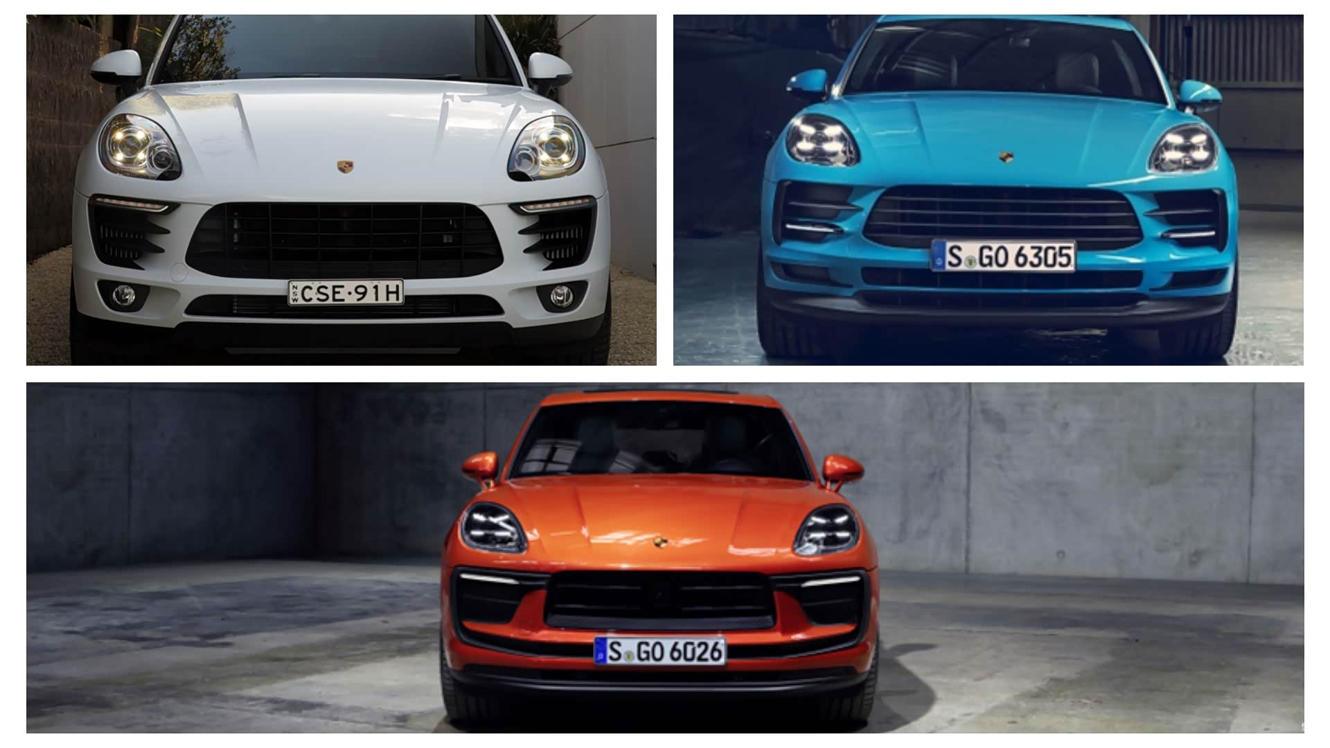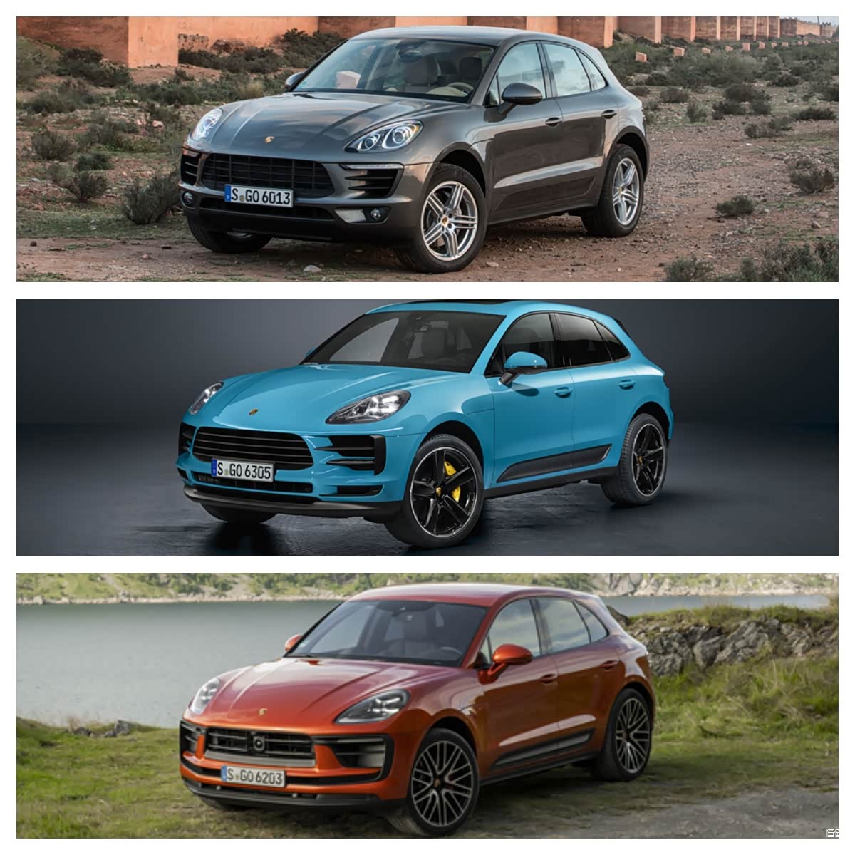 小编在此也汇总了从2014年上市至今,这一代保时捷Macan的改款历程。如果不是我说,您是不是会以为这只是三款不同配置的同年份Macan?但是,小编这一次找的图片均为Macan S车型的外观图片。从图片上来看,整体造型和一些经典元素均被传承下来,例如四点式LED日间行车灯,还有横向展宽的前进气格栅和两侧的进气格栅等等。