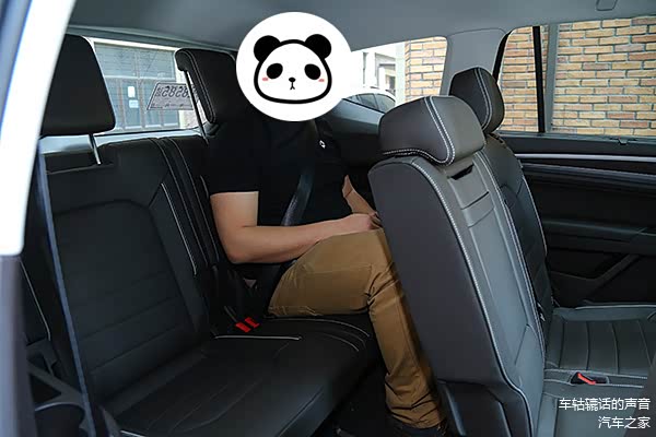 对于第三排而言,在第二排座椅处于最前位置的时候,我们那位身高185厘米体重超过185斤的“胖哥”坐在第三排其腿部可以得到将近一拳两指的空间,而即便是将第二排座椅放到最后,其腿部也可以留有两指的空间。除了空间外,途昂第三排较宽大的坐垫也为其带来了很好的乘坐感受,他体验过后的第一句话就是:这第三排我坐没问题,绝对没问题!坐垫比其他车的都舒服,绝对不是马扎!
