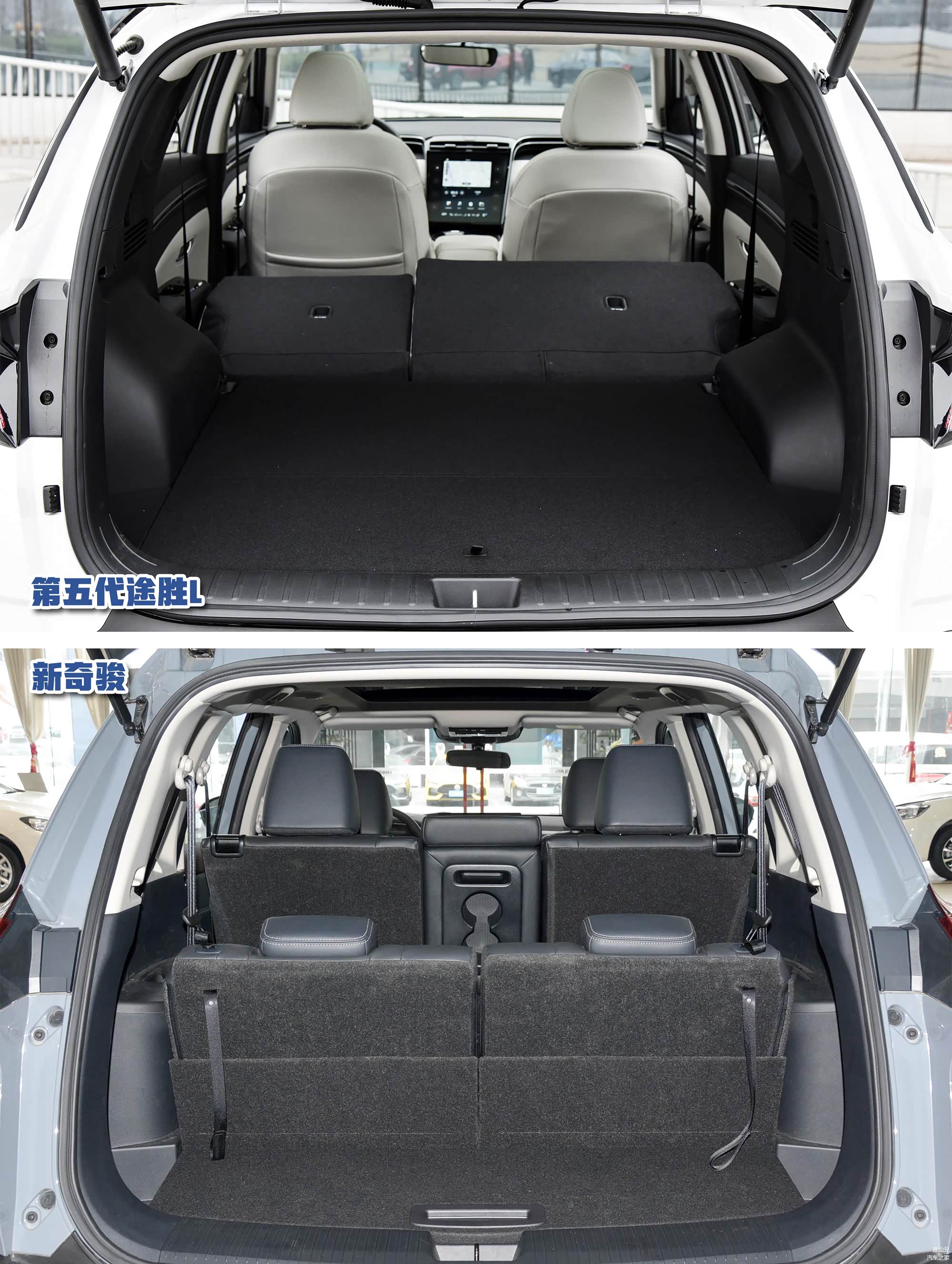 综上所述,作为家用SUV,这两款车在基本配置和空间表现上都不错。第五代途胜L 1.5T TOP旗舰版多了电动感应尾门、全液晶仪表盘、前排手机无线充电、前排座椅加热这些非常有吸引力的配置,总体来说还是更有性价比。
