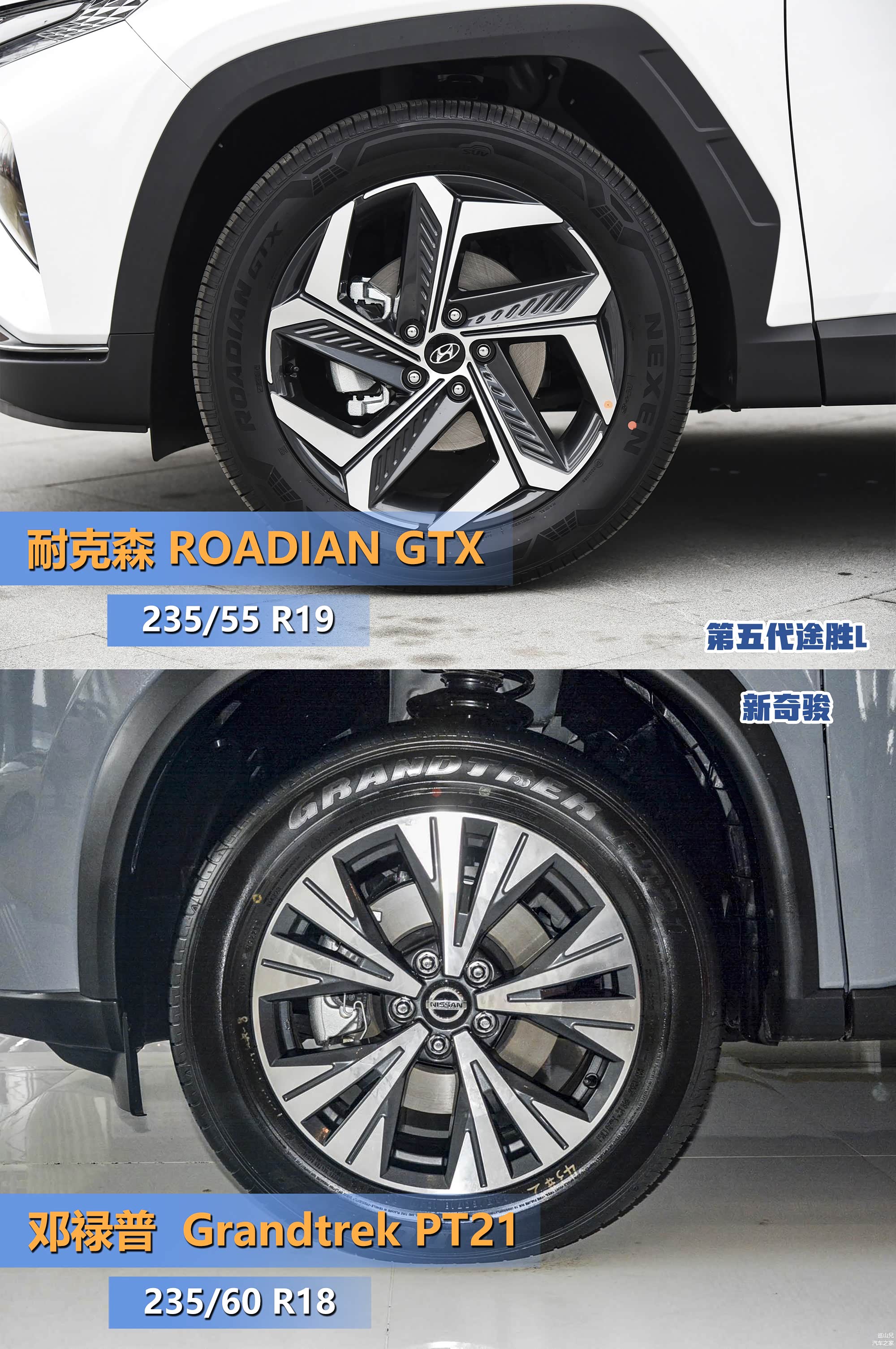 轮胎方面,第五代途胜L 1.5T TOP旗舰版上装备的是耐克森Roadian GTX系列轮胎,规格为235/55 R19,主打燃油经济性和耐磨性,是一款比较合格的城市SUV轮胎。