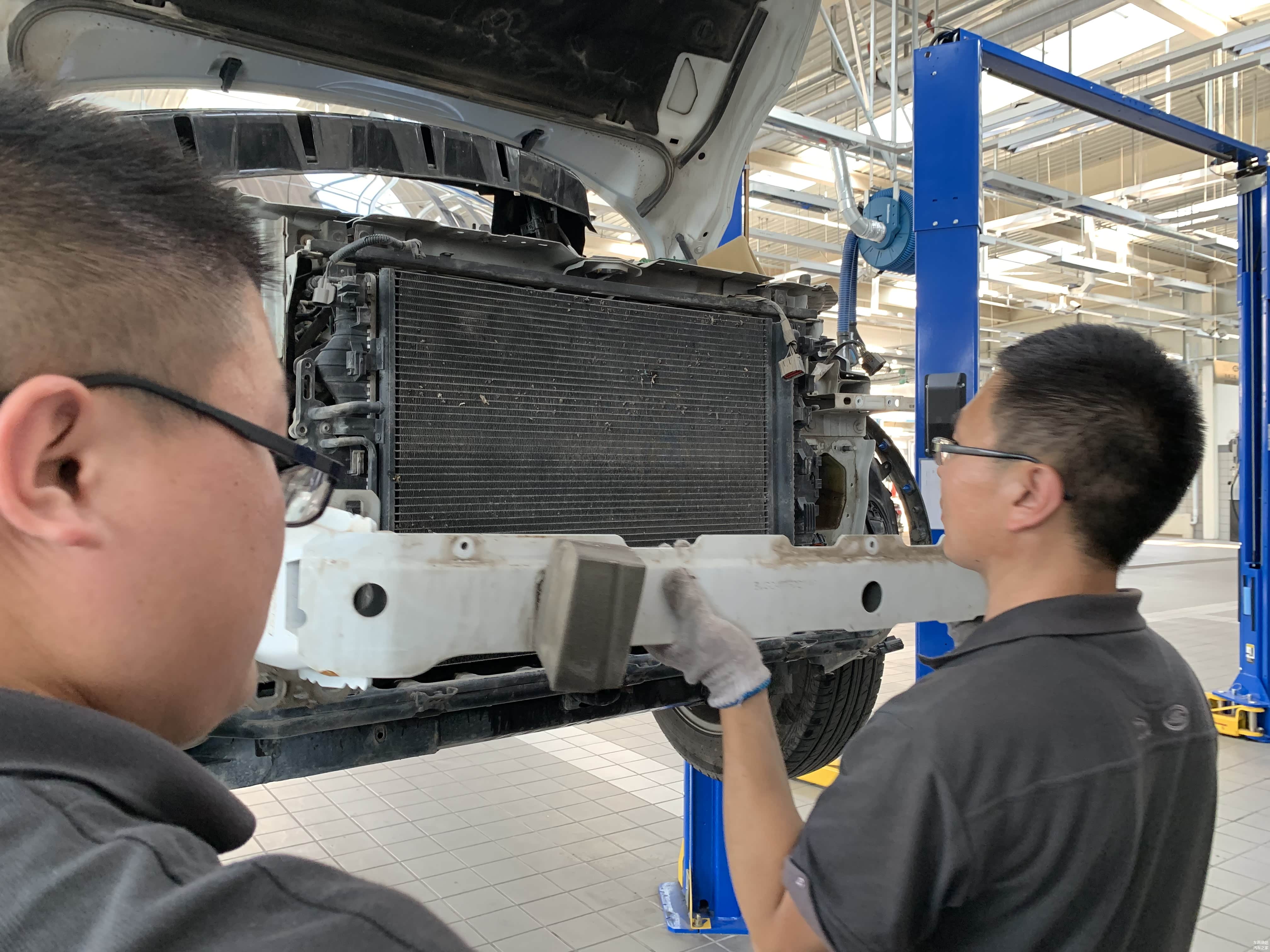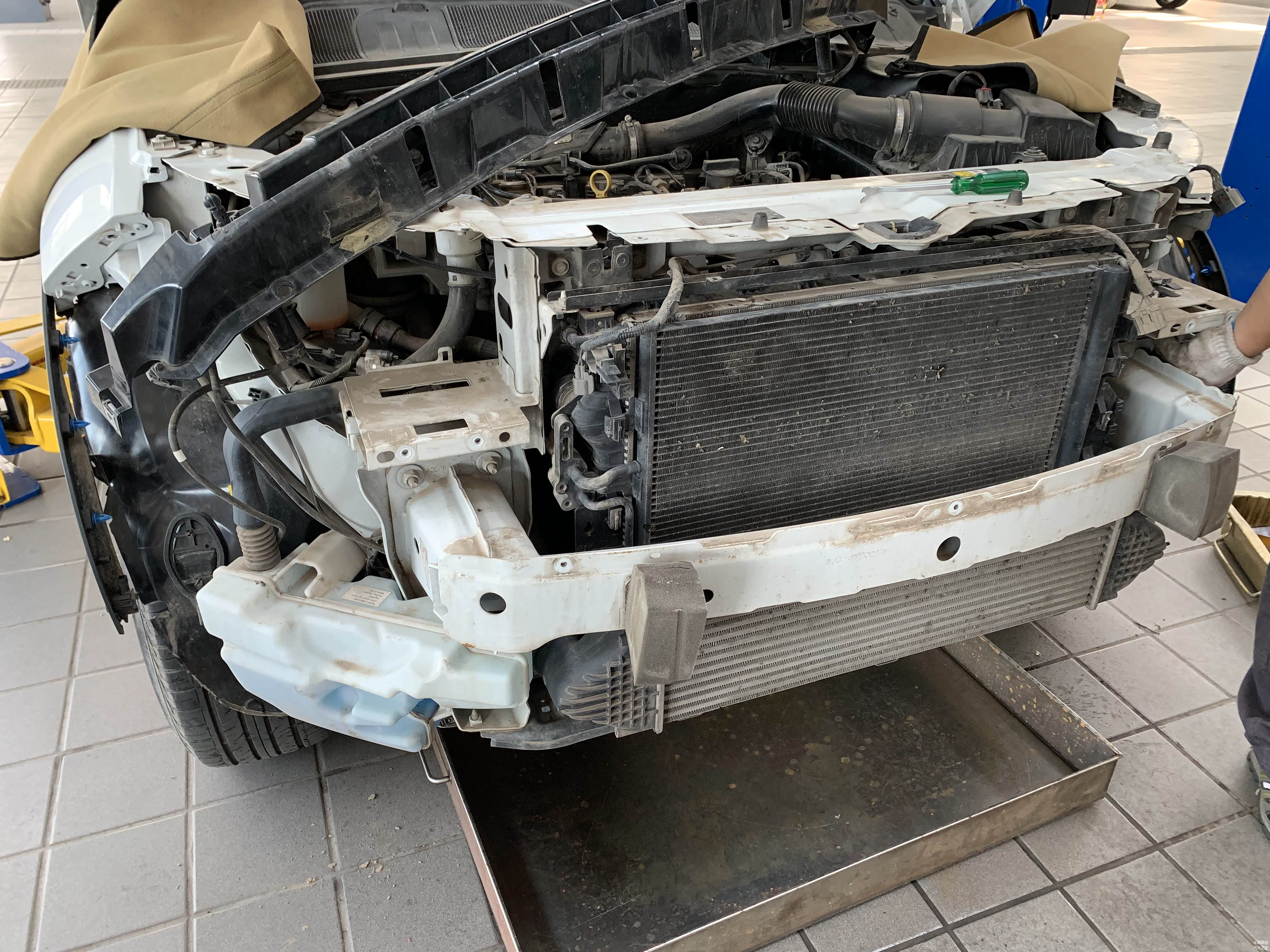 和车主协商之后,车主要求进货,然后在4S店更换新的散热器。