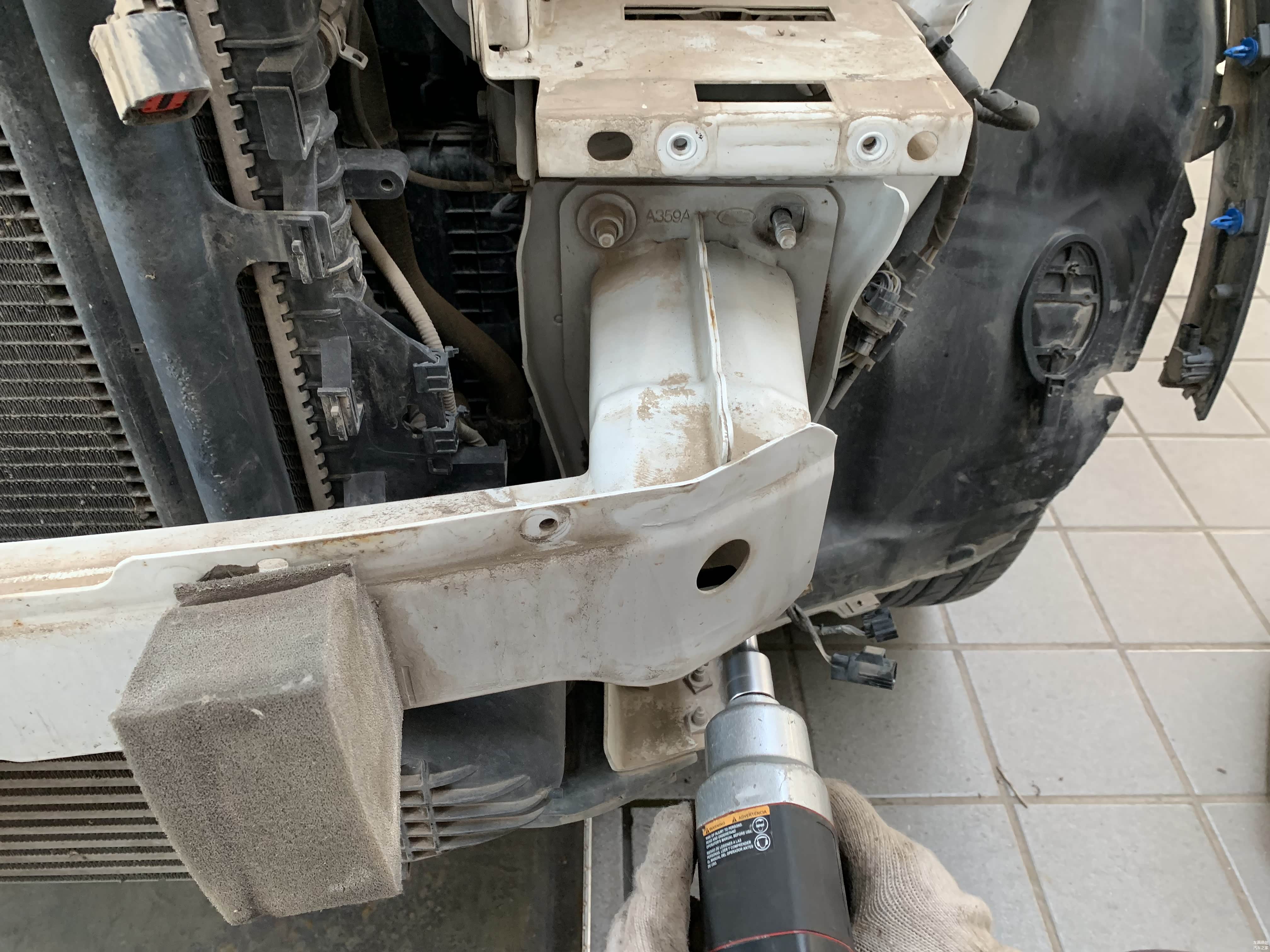 保险杠拆的时候比较方便,几个螺丝和卡扣的事情。拆了保险杠之后,防撞钢梁和下散热器都漏出来了,要把散热器拆下来的话,也要把这些东西先拆掉。
