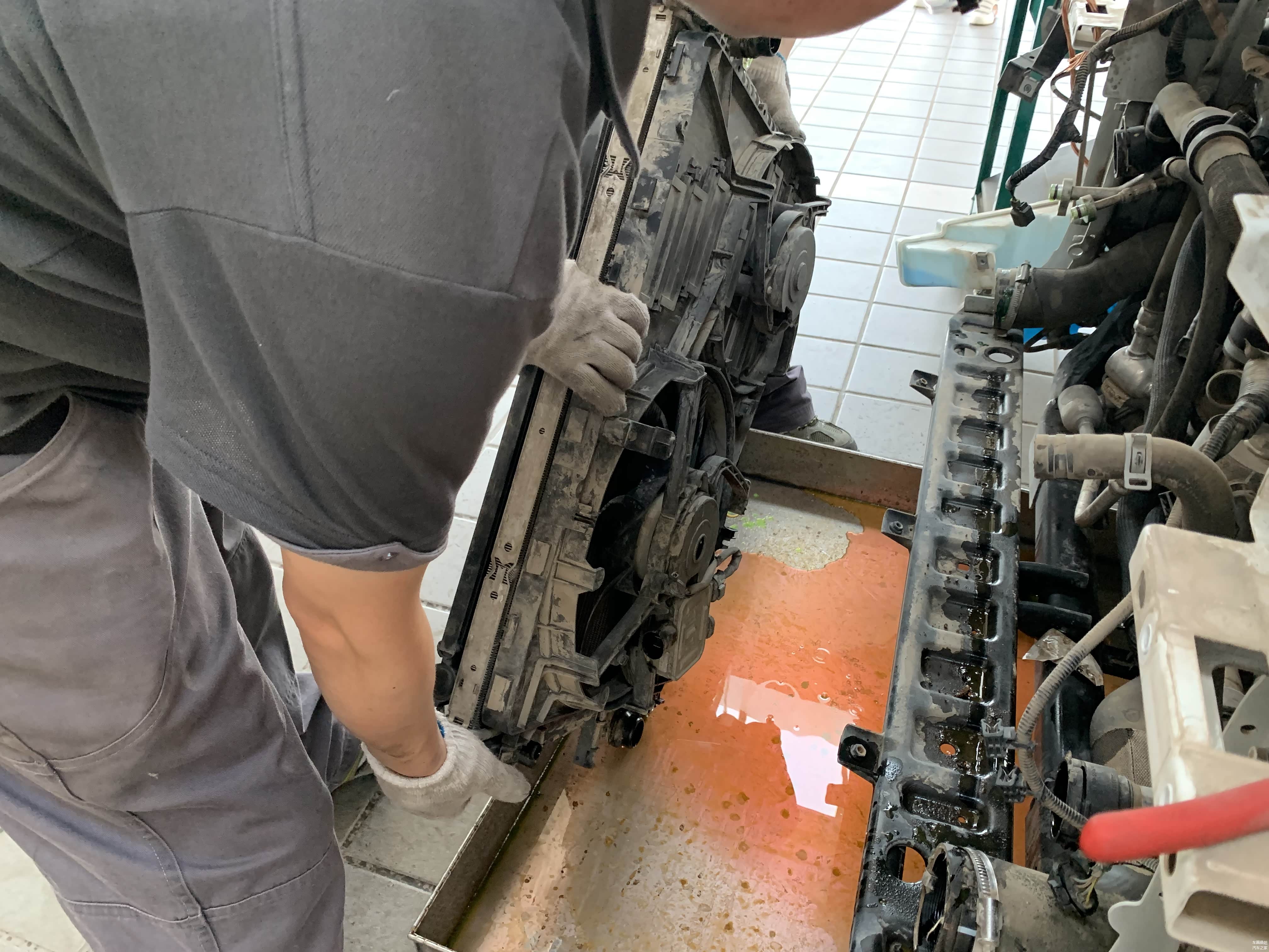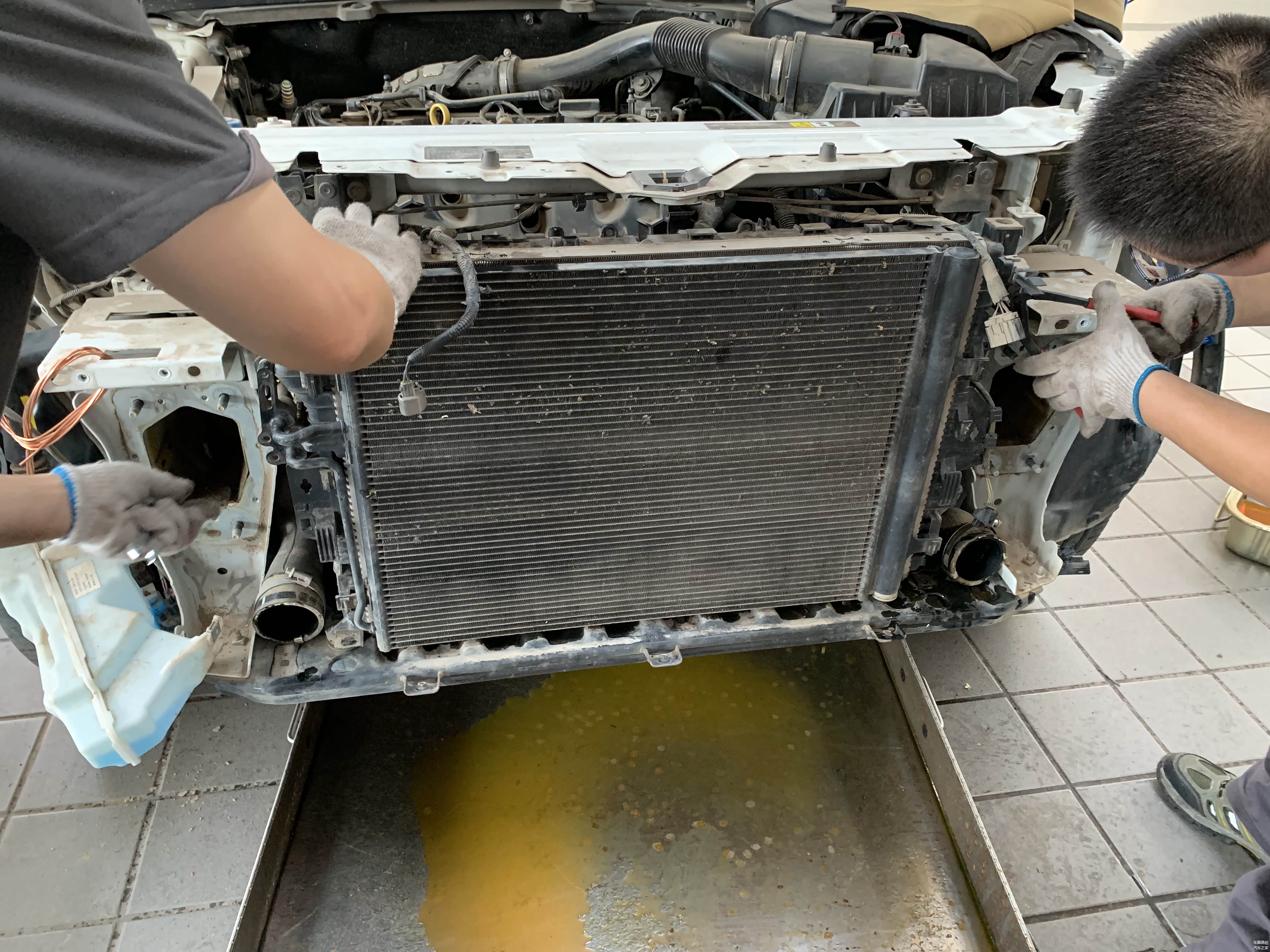 在拆的过程中车主一直在咨询问题出在哪里,导致散热器出问题。其实在日常养车用车过程中经常会遇到这样的问题。在日常行车过程中,有石子或者其他撞击物打到散热器上,也会对散热器造成伤害。在保养的时候,如果更换的不是同一品牌的防冻液的话,有可能两种油品在一起发生化学反应,对管路和散热器也是一种伤害。所以奉劝广大车主合理的养车用车。避免对爱车造成不必要的伤害。