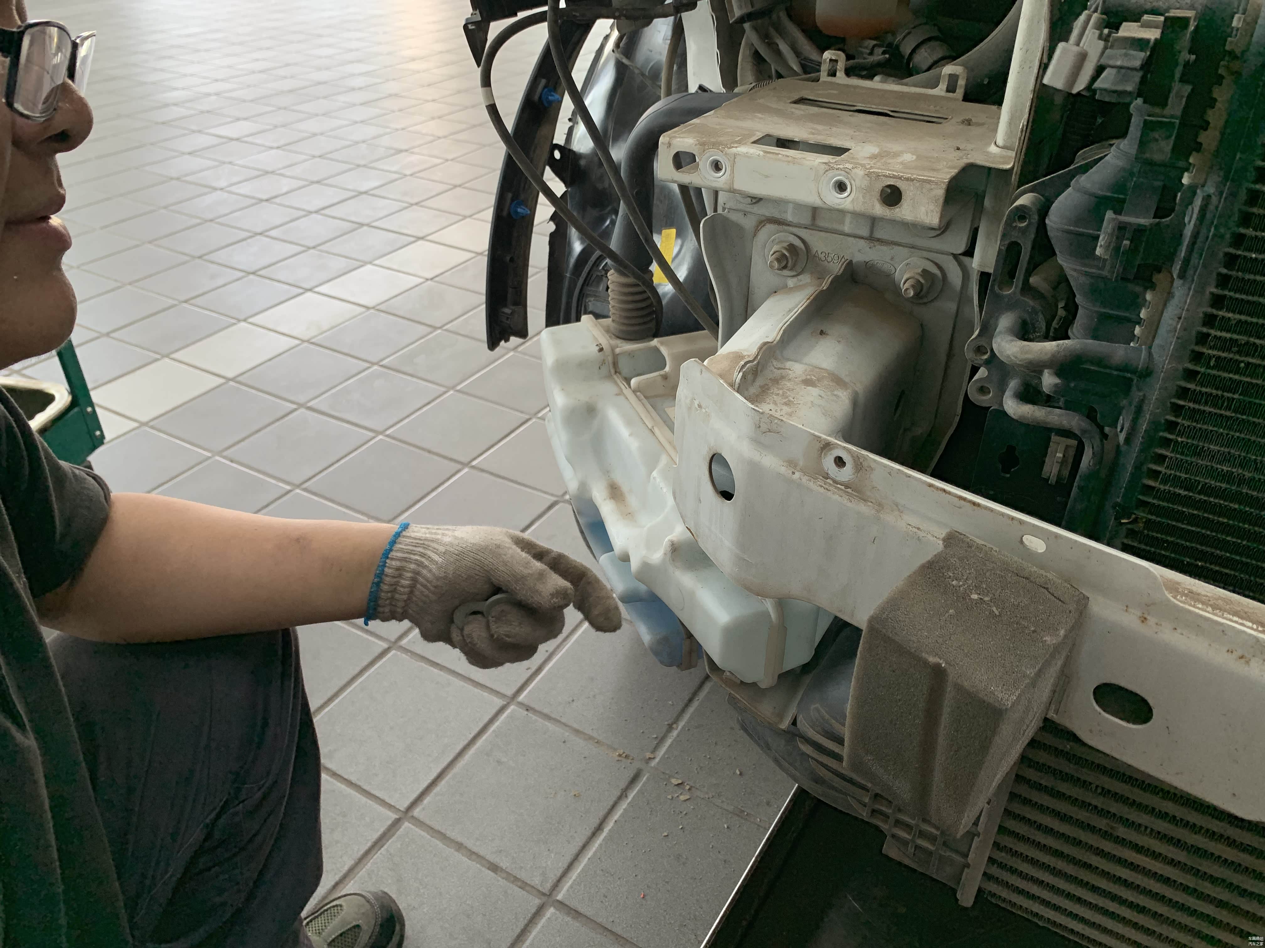 左边是玻璃水,玻璃水箱固定在防撞钢梁上,有些隐藏的小螺丝拆的时候有些不方便,同时也需要注意一下,需要手电筒照明,避免对某些零部件有损伤。