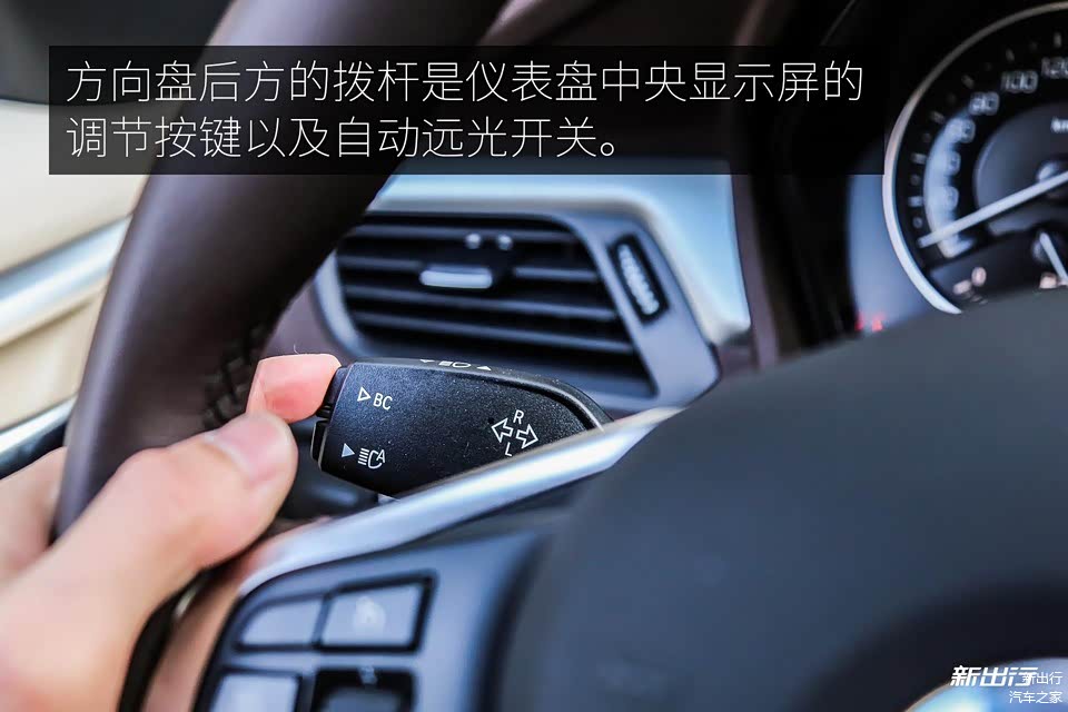 方向盘右后方的拨杆是转向灯控制,车灯控制区设置在中控台的右边。拨杆上设置了自动远光灯按键以及“ BC ”按键,熟悉宝马的童鞋应该都知道“ BC ”按键是切换仪表盘上的显示信息。方向盘后方拨杆是常规的雨刷控制拨杆,之诺 60H 配备了自动雨刮。
