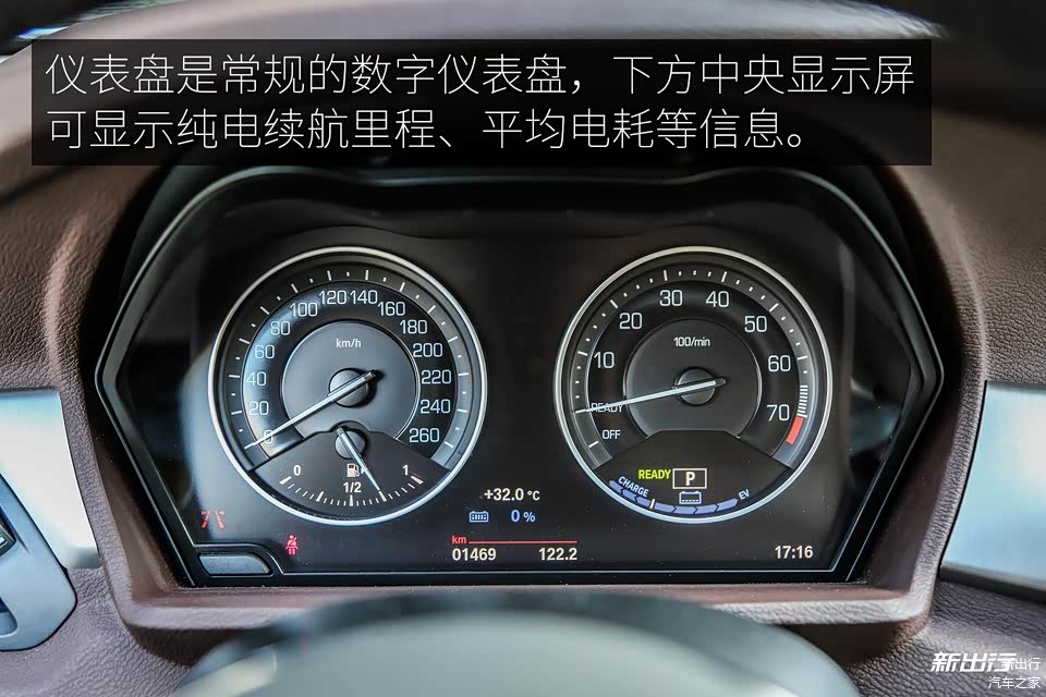 仪表盘是常规的数字仪表盘,左侧显示的是时速表,右侧显示的是发动机转速表。下方显示的行车电脑信息,可以通过方向盘左后方拨杆上的“ BC ”按键来切换行车电脑信息,可显示纯电续航里程、平均电耗等等。