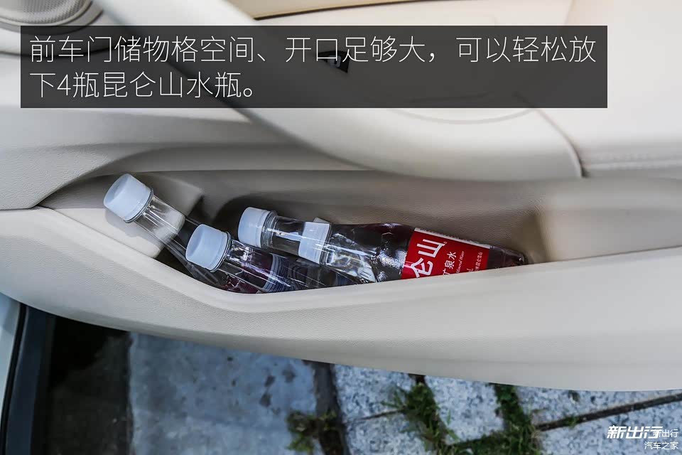 后排中央扶手也提供了两个杯架,此外后方还有一层储物格,可以给后排乘客用来放手机,此外后车门上也有一个小储物格可以用来放手机。副驾手套箱内部空间也很平整,并且空间也很大。