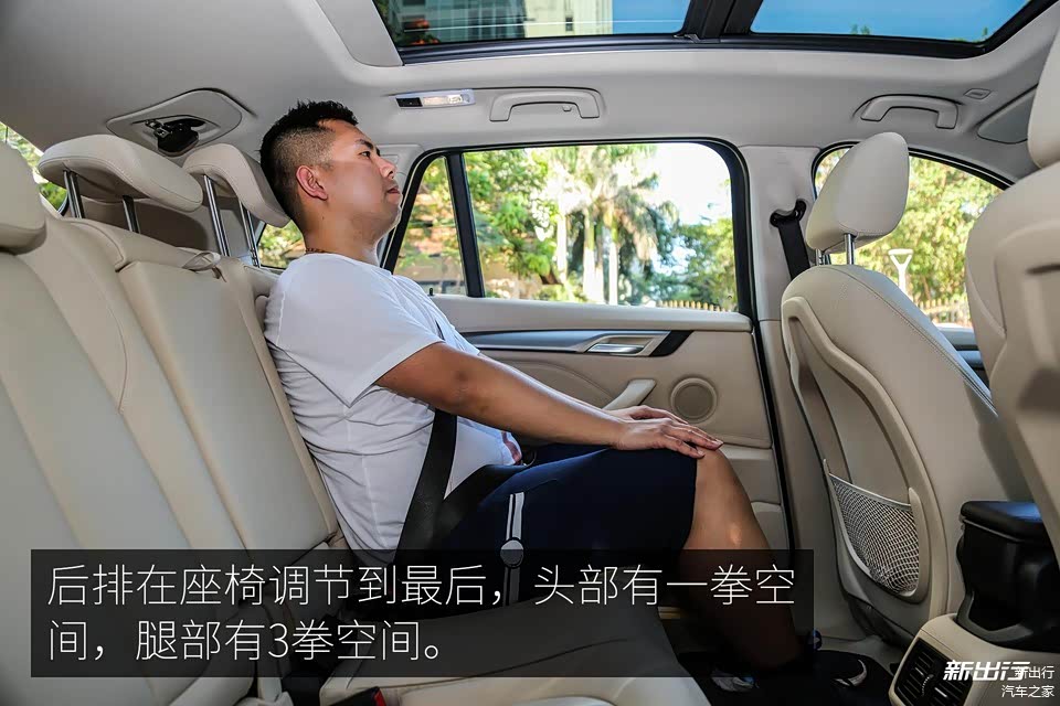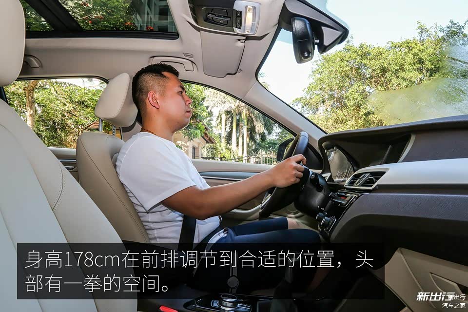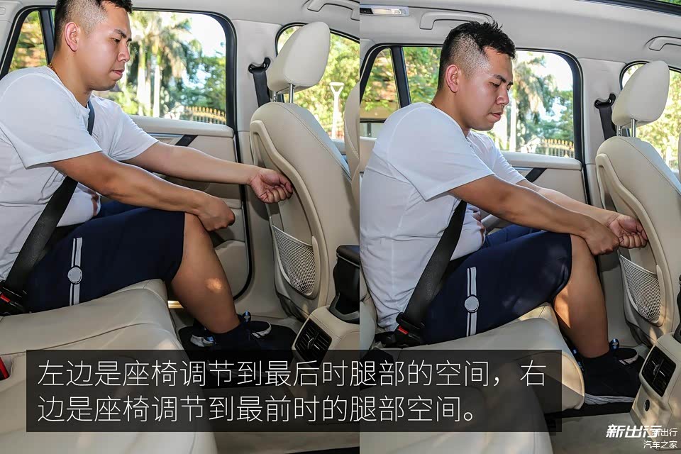 乘坐空间方面,身高为 178cm 的乘客在前排调节到合适的位置之后,头部还有一拳的空间。保持前排座椅不动的前提下来到后排,头部依然能够获得一拳的空间。而腿部空间则非常充裕了,在座椅调节到最后,有接近 3 拳的空间;座椅调节到最前,也有两圈的距离。