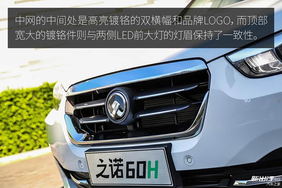 其中边角圆润且中间笔直的中网造型最为抢眼,这也诠释了之诺品牌的设计理念,中间处则为高亮镀铬双横幅和品牌 LOGO,而顶部宽大的镀铬件与两侧 LED 前大灯的灯眉保持一致性。