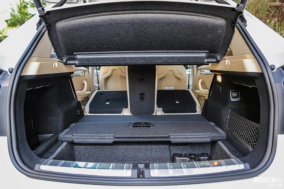 之诺 60H 电池组布置在车辆的底部,所以不会侵占到后排以及后尾箱的空间。所以后尾箱的空间不受影响,不仅大而且很平整。并且后排座椅可以按 4:2:4 的比例放倒,空间扩展性也更好。打开隔板,下方是一个小储物格,可以用来放置随车充等随车工具。