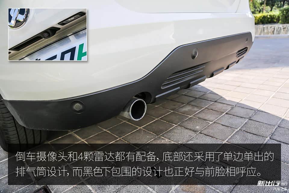 尽管车尾采用了简洁化的设计,但依旧显得非常敦实和稳重,其中两侧细长镀铬条与竖状式尾灯的“组合”颇具特色,在夜间点亮后的效果也很不错,同时还能大幅提升整车的辨识性。与此同时,倒车摄像头和4颗雷达都有配备,并采用了单边单出的排气筒设计,而黑色下包围的造型正好与前脸相呼应。