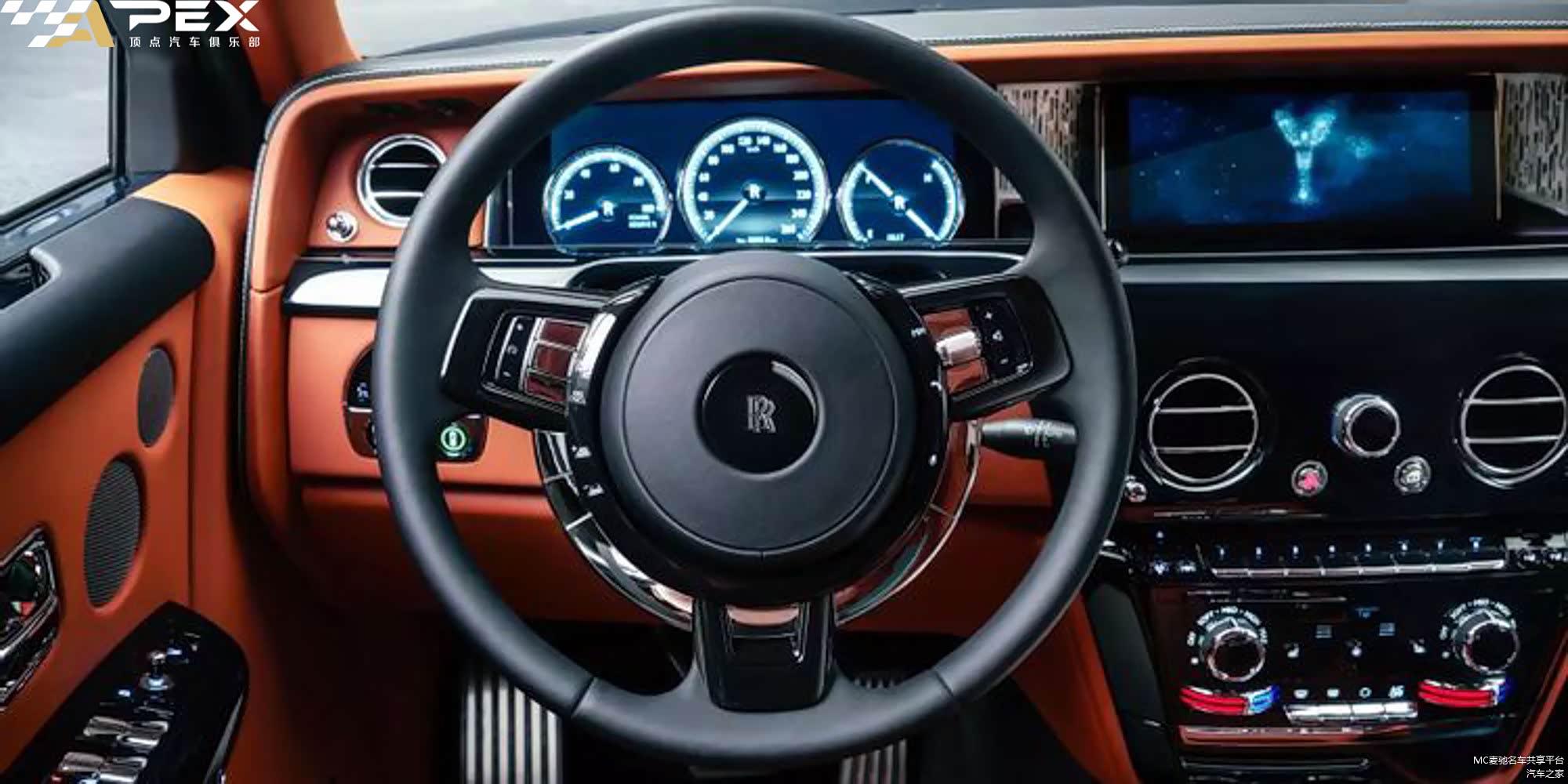 幻影的内部装饰有真皮座椅和柔和的色彩。似乎没有任何鲜艳的色彩来扰乱宁静,但从上方的天花板中闪烁出来的是星光顶篷。劳斯莱斯通过将光纤束安装到天花板上照射来实现这一点。每条线都分散在不同的长度和深度,以模拟繁星点点的夜空。当然,就像 劳斯莱斯幻影中的其他所有东西一样,它的亮度可以调节到观星者认为对眼睛伤害最小的任何级别。