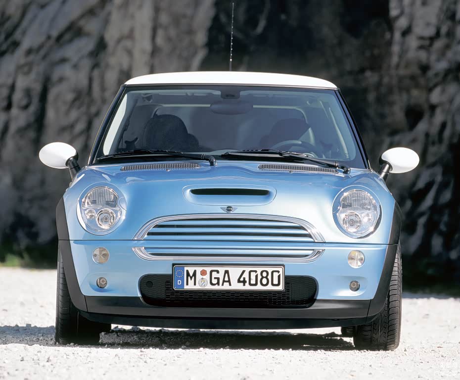 为了把大部分的机械装置都安装在相对狭小的前端,蛤壳式发动机舱盖设计非常个性,掀起时前翼和前照灯随着发动机舱盖一起起来。其下面是与道奇霓虹 (Dodge Neon)共享的四缸全合金16气门Tritec发动机,排量为1598毫升。与 K系列相比,这实则是一个倒退的做法,因为只有缸盖是铝制的,缸体仍是老式铸铁。对此有两种配置可选,90马力基本款MINI One(售价为10300英镑),和115马力主流Cooper(售价为11600英镑),全新的MINI商业模式已宣告成型。