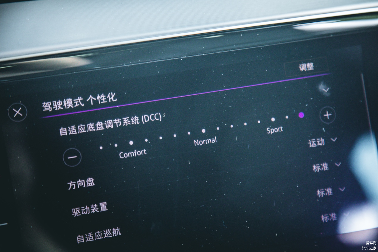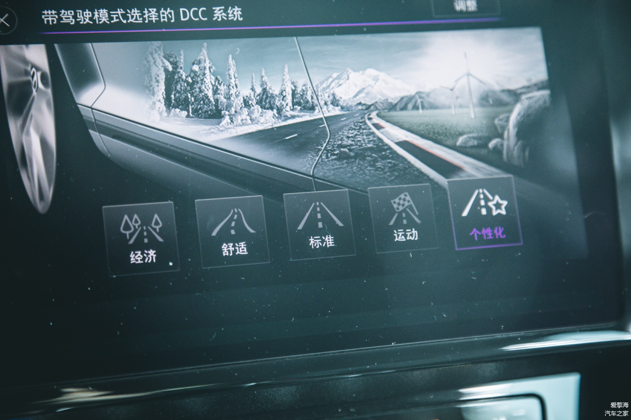最讨喜的还是新蔚揽配备的DCC动态底盘控制系统。与之前不同的是,升级后的这套系统能够在中控菜单中实现对底盘更加精细的调节,而非过去的三种模式。当然,你也可以搭配驾驶模式选择更加快捷地对底盘软硬进行调整,但谁不愿意在舒适和运动之间找到属于自己的平衡呢?