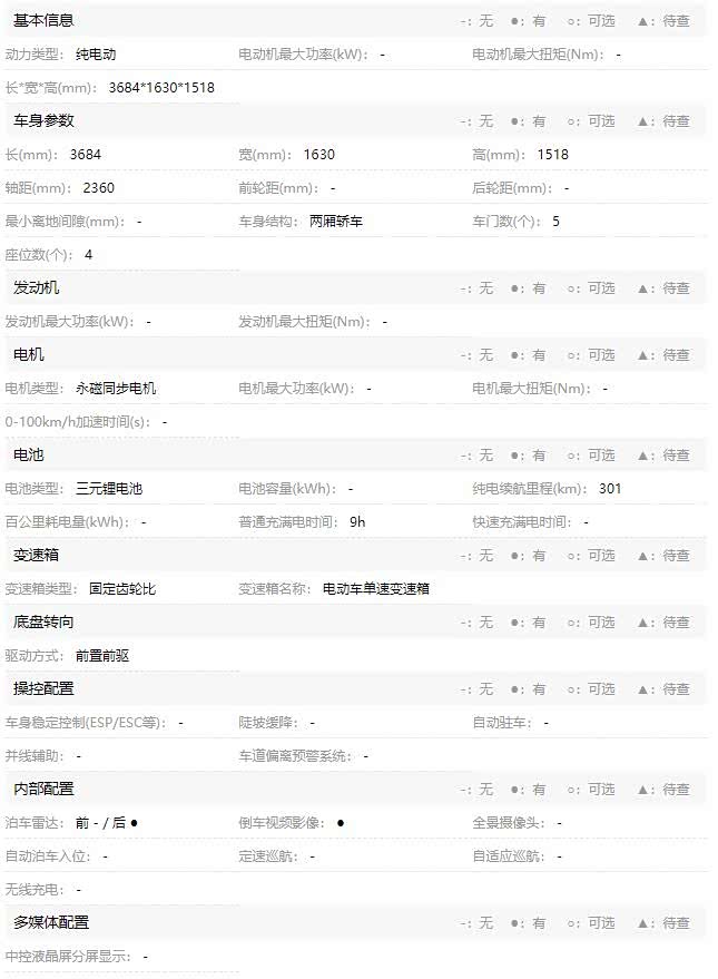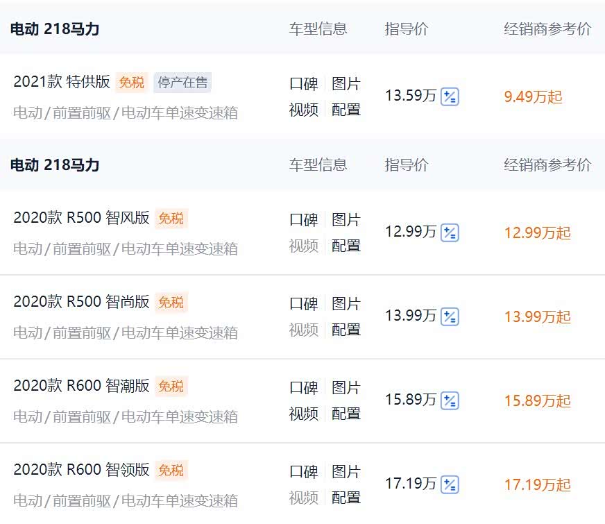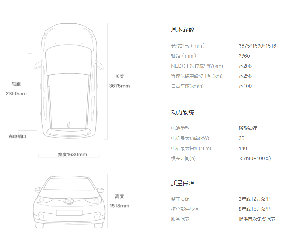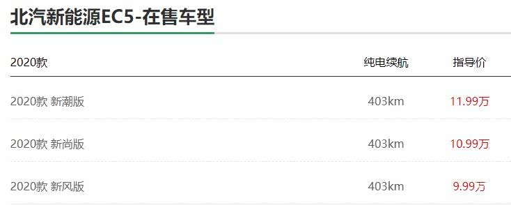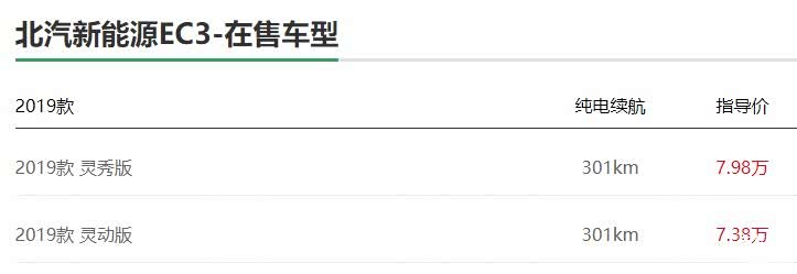 北汽新能源EC220产品分为灵动版灵秀版;价格5.98万起