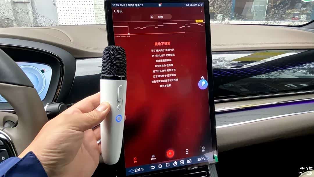 当然,除了听歌之外,在比亚迪汉EV内你还可以随时开唱,比亚迪DiLink 4.0 (5G)系统支持全场景K歌,直白点说就是你不用打开一些内置的音乐APP,拿起话筒就可以唱。当然,打开APP后效果更好,而且还会有一些K歌的互动,简直就是名副其实的KTV。实在是没想到,打败KTV的竟然是汽车。另外,话筒的造型也非常小巧,握感舒适。