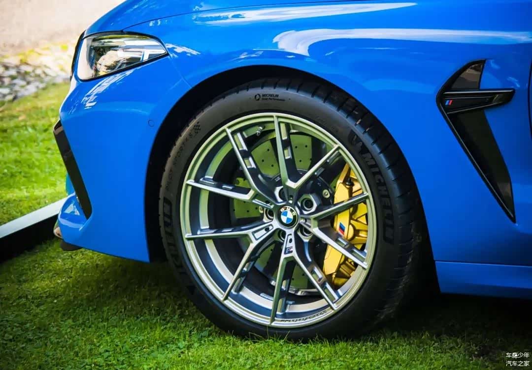 这款镂空式轻质铝合金轮毂和巨大的金色碳陶瓷M卡钳,是外观最能凸显性能范的地方之一,将制动盘直径增加到前400mm、后380mm,同时具有出色的耐热性和耐磨性。这套碳陶瓷刹车系统在国内选装的话,需要你花费13万元人民币。