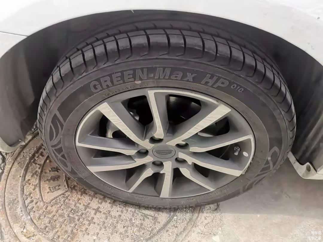 检查轮胎,四条轮胎以及备胎都是原车胎,日期匹配,品牌匹配,磨损和公里数匹配。