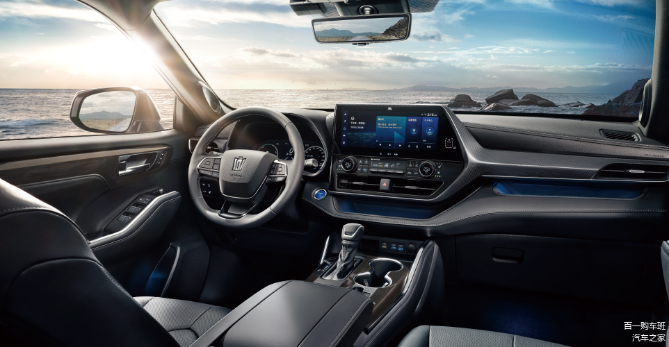 皇冠陆放的内饰布局虽没有新势力那般富有科技,也没有BBA那般豪华,但也明显比冠道更有层次感和设计感。例如分层式的中控台,直角梯形状的12.3英寸中控屏,12.3英寸的液晶仪表,以及嵌有皇冠标且比冠道更加饱满的三幅式方向盘,都成为了陆放向“高端”、“豪华”进发的强力佐证。