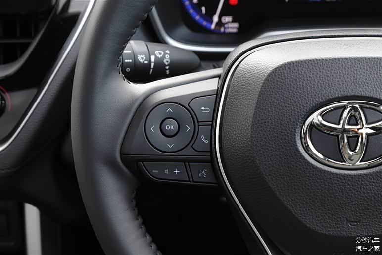 从它的多功能方向盘能够看到,这台卡罗拉CROSS配备了ACC自适应巡航,车道保持等辅助驾驶功能,L2级别的辅助驾驶在日系车上基本上也是已普及的状态。