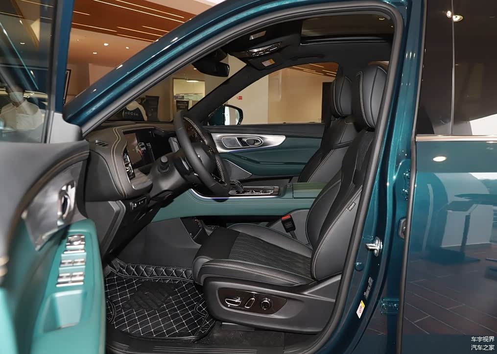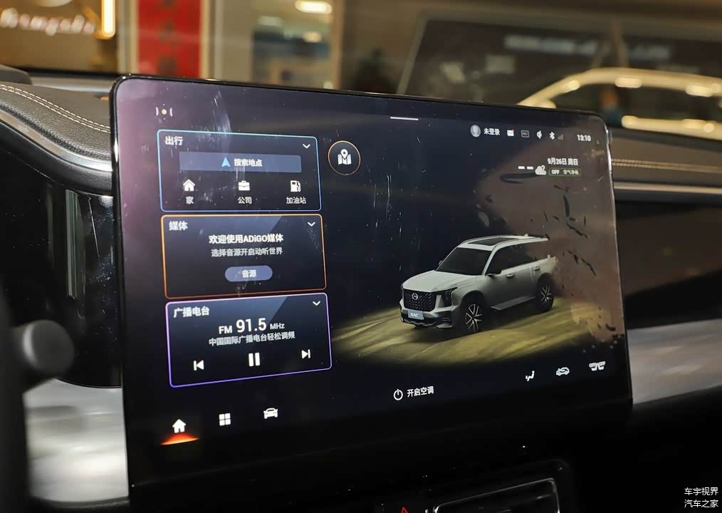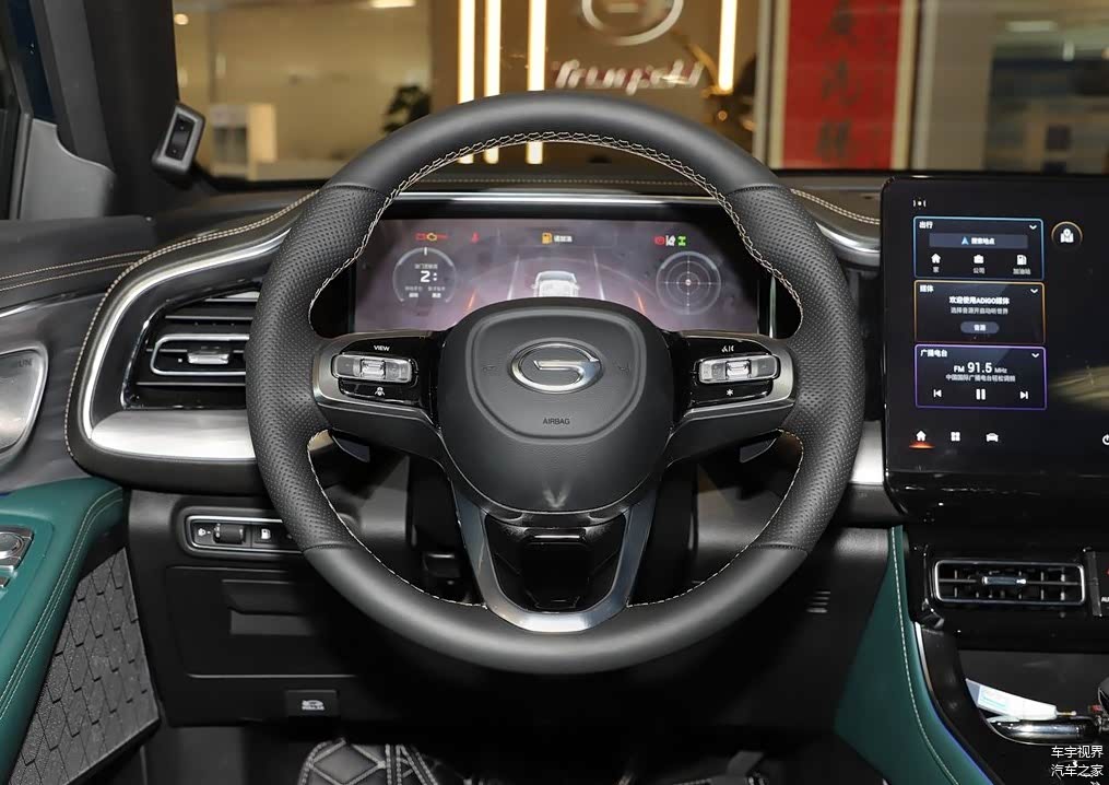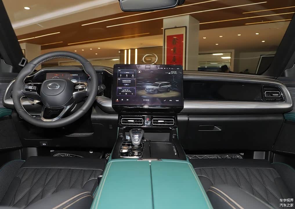 内饰部分,全新一代传祺GS8也开始玩起了科技感。中控布局上,新车和广汽家族的AION S颇有一些相似,整体调性算是极简+科技风,中控几乎没啥实体按键,取而代之的则是这块14.6英寸中控大屏与12.3英寸全液晶仪表。其中,中控屏基本涵盖了车内99%的功能控制单元,内置的ADIGO4.0系统,在智能网联层面也算是第一梯队了;且在高配车型上,全新传祺GS8还配备了HUD抬头显示。