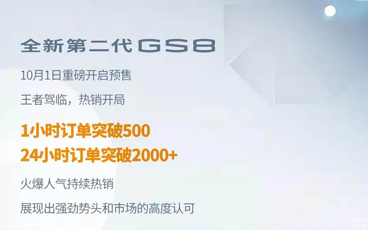 当然了,随着全新传祺GS8在预售首日订单便已经突破了2000+,所以我们还是愿意将它称之为国产车里今年最大的“黑马”。只不过,这个“黑马”目前还需要打一个引号,毕竟,谁也不知道全新传祺GS8是否真的爆款稳了。