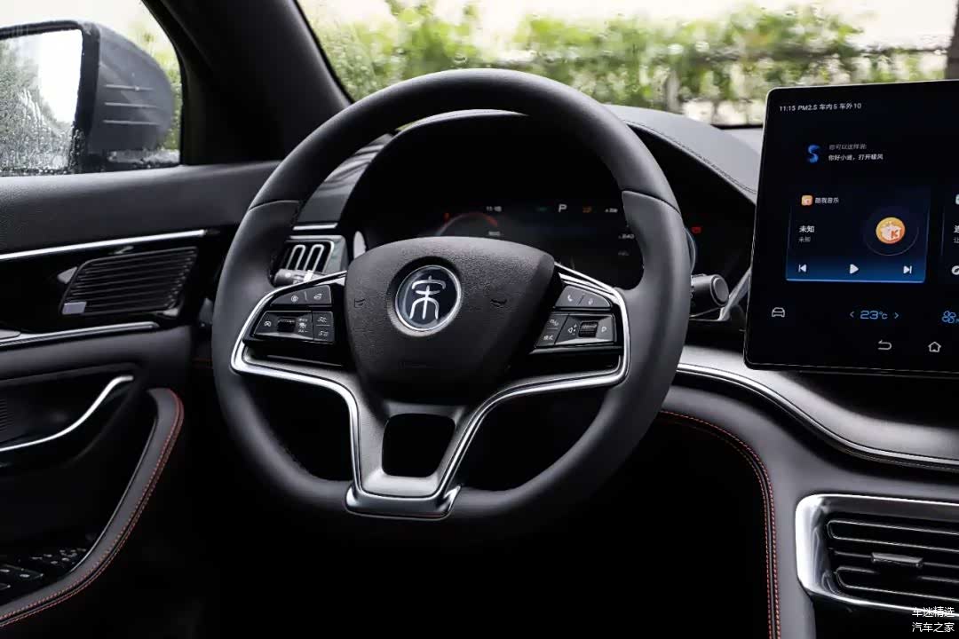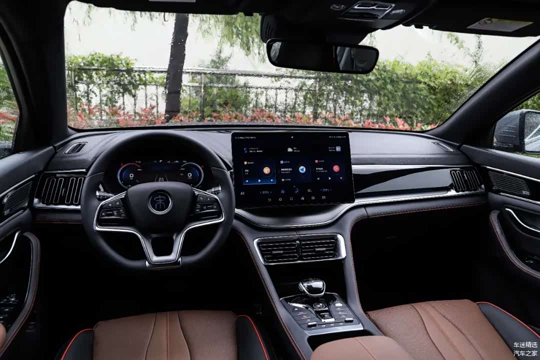 宋PLUS DM-i AWD的车内其实与燃油版车型相比就没什么区别了,简约的风格足能够让人眼前一亮,同时还提供了一定的豪华感。另外,车内的用料还是相当厚道,触手所及的地方基本都有真皮材质进行包覆,配合上钢琴烤漆面板以及缝线工艺,细节到位。