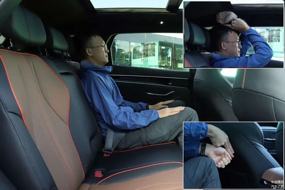 保持前排位置不变,同一体验者来到后排,此时的头部空间和腿部空间同样为一拳两指左右,在同级当中处于正常的水平。