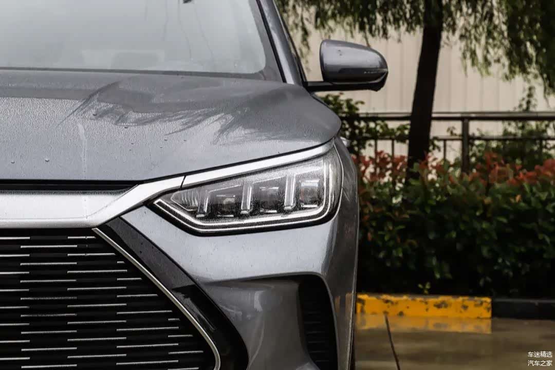 比亚迪近几年推出的新车在颜值方面突飞猛进,由比亚迪全球外饰设计总监洛佩兹打造而来的宋PLUS DM-i AWD车型仍然秉承着以“龙”为主的基调。大尺寸的进气格栅内部为点阵渐变式设计,上方的“龙须”造型饰板与比亚迪汉有着异曲同工之妙,整体视觉效果精致且大气。