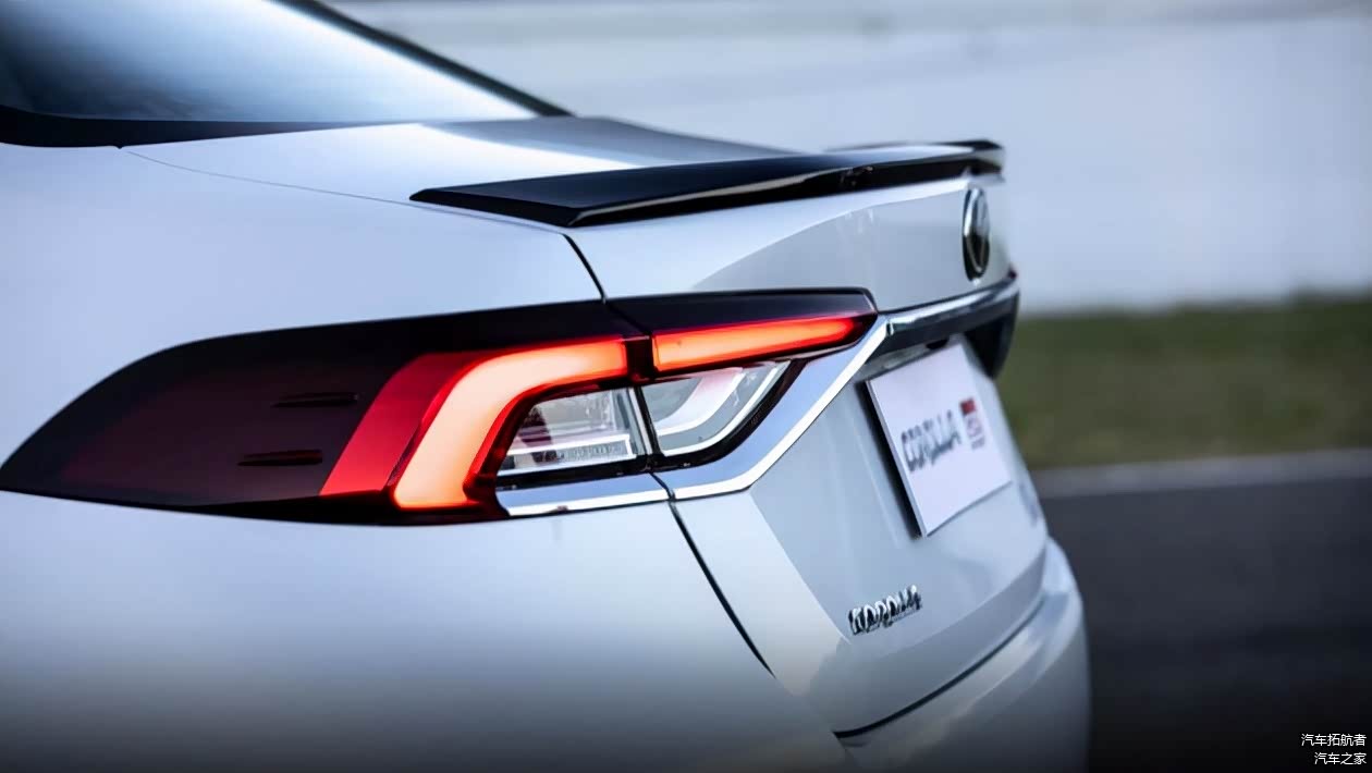 车尾部分则是把 LED 组合式尾灯进行了熏黑处理,再加上大尺寸的扰流器以及右侧的专属 GR-Sport logo,无时无刻都在提醒着别人,这是一辆为赛道而生的 Corolla GR-Sport!