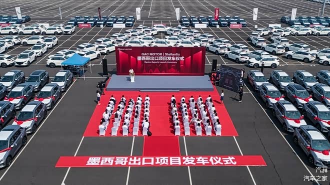 9月26日上午,广乘国际在杭州工厂举办GAC MOTOR & Stellantis墨西哥出口项目发车仪式。活动现场,近千辆贴牌新车排列为“GAC”车阵,整装待发。此次出口的车型为换标贴牌的广汽传祺GS5,以Stellantis旗下品牌——道奇Journey(“酷威”)的身份出口墨西哥。