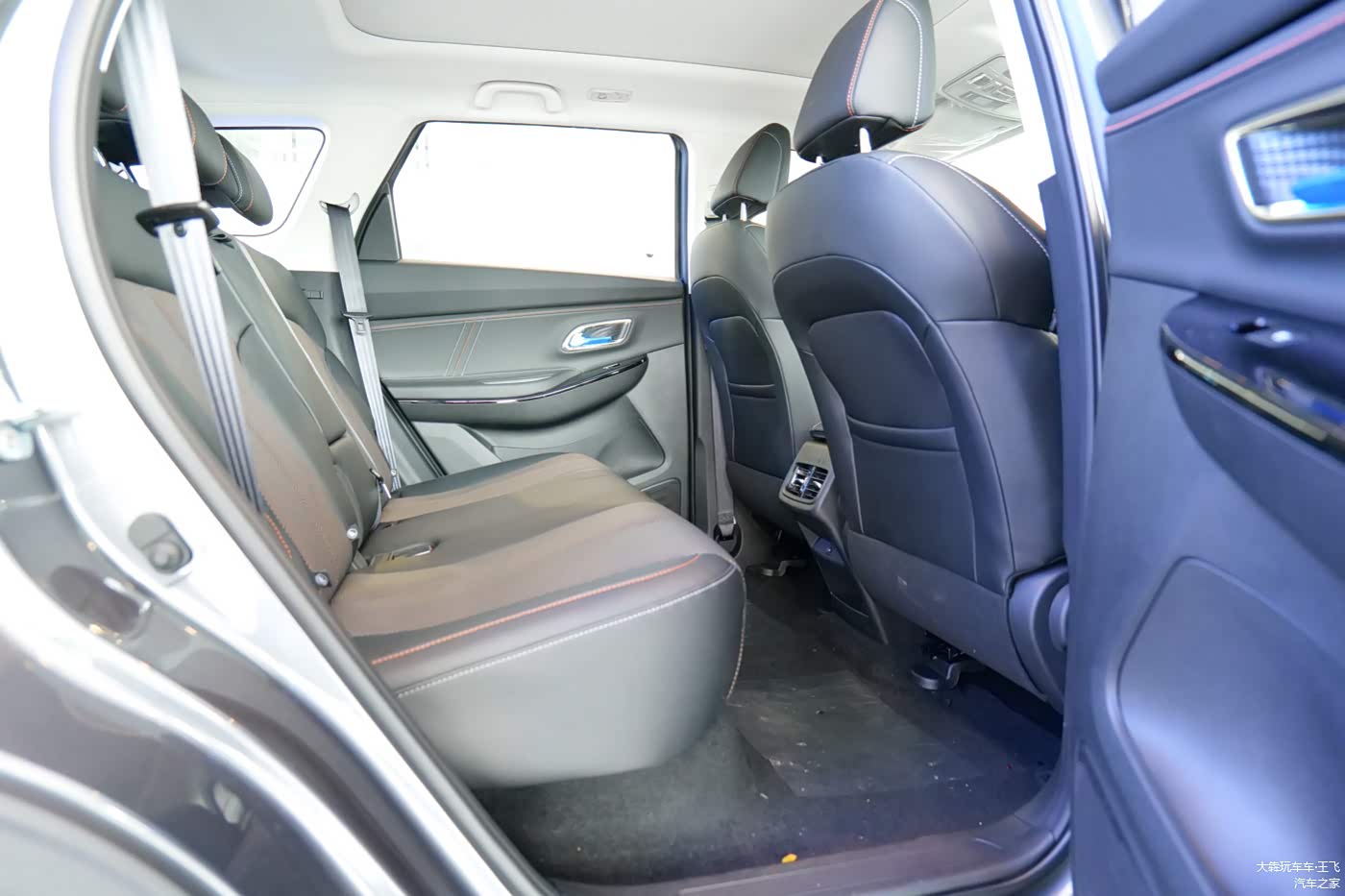 后排空间请看图,这车身尺寸说空间大小都不用提了,管够!地板是纯平的。后排空调出风口当然有。