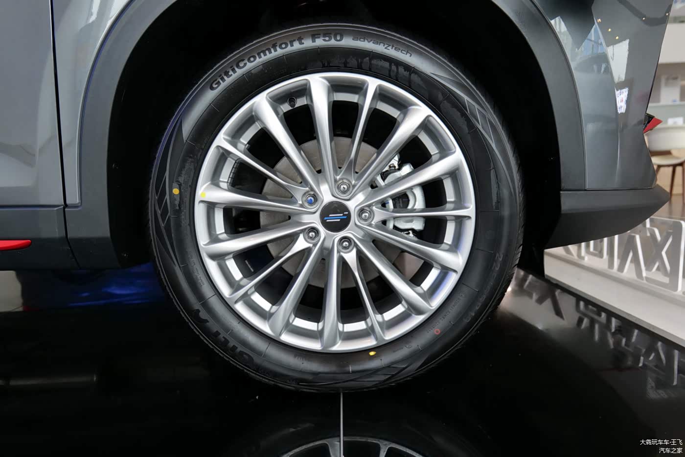 19吋轮毂与大车身很配,轮胎尺寸225/55R19,我觉得这轮毂挺漂亮甚至带了那么些豪气,不知你是否有同感?