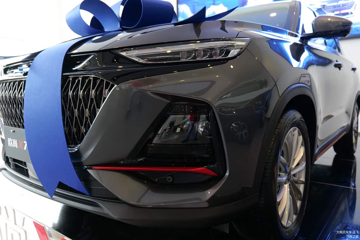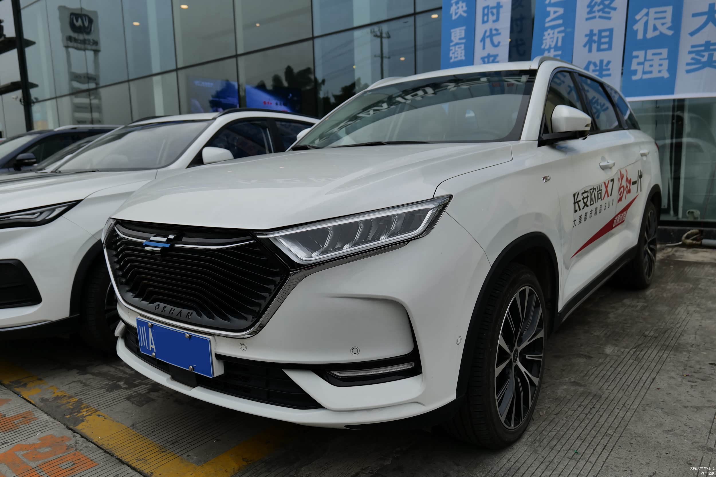 展厅外放着一辆X7,顺手拍了一张供大家对比,其实它也是去年12月才上市的准新车,不得不说现在车厂出新的速度实在是快。两者前脸的差异很大,这面相一变,感觉个性都变了:X7看上去是守正,X7PLUS则是出奇。