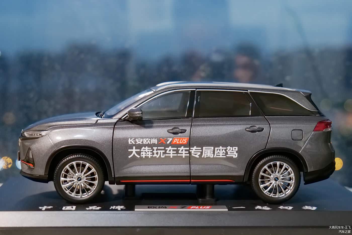 受室内场地所限,没有侧面整体的实拍图,允许我用模型代替了。哪怕是模型,从这侧面光看比例也能感觉得出它是个大块头:实车三围:4730mmx1870mmx1720mm,轴距2786mm,我觉得把它归到紧凑级SUV里面是有些谦虚了,其实这样的尺寸离中型SUV就差那么一点点。车身上的橙红色点缀增添了活力。