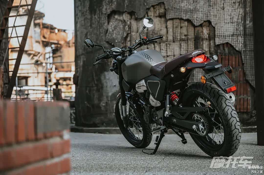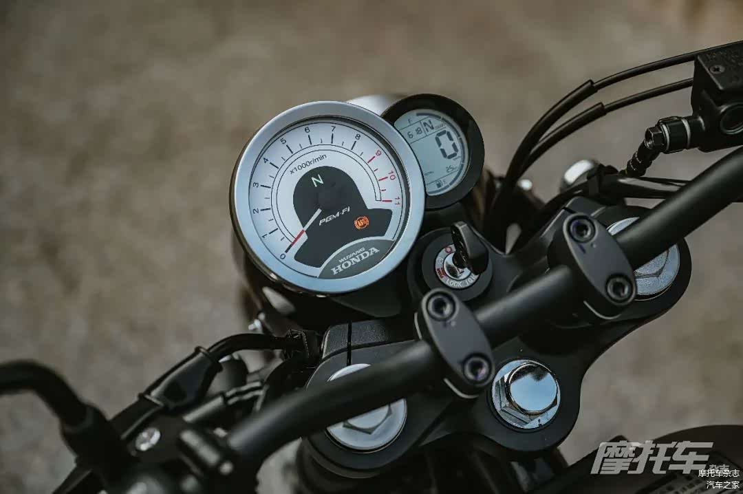 除了外观变化,新款在配置上也进行了调整,最明显的就是转向灯造型改为了更精致的圆环型转向灯,更复古的同时和整车风格更搭配。座垫采用了复古条纹装饰,仿皮革质感加上颜色上的调整,和整车的搭配十分协调。仪表从原来的双圆仪表造型改为了偏置式仪表,大圆是指针转速表,小圆则是显示时速、油量、历程等信息的液晶仪表,侧面带有USB接口,这种设计也相比老款增加了整车的运动感。同时为了更加符合Cafe Racer的特质,车把相比老款更低更平,换来的是坐姿上更加战斗,让这款车有了更鲜明的运动特征。