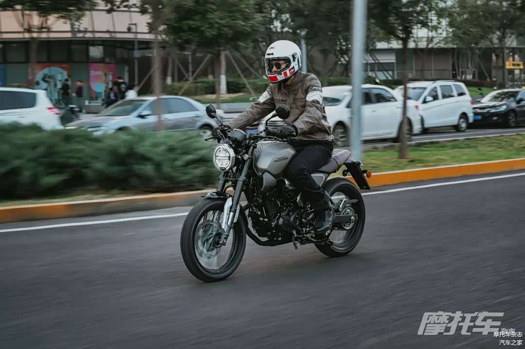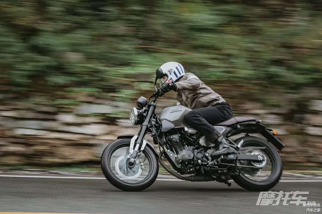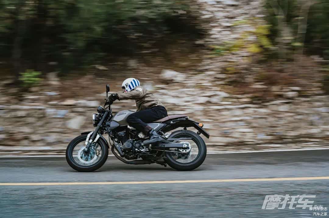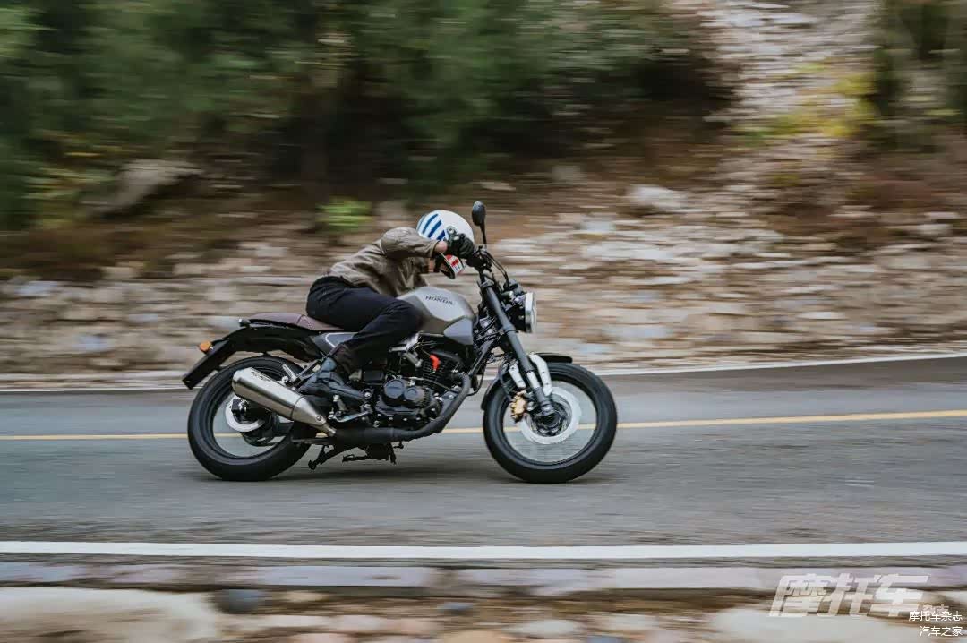在运动驾驶环境下,新款CB190SS的乐趣体现得更加明显。得益于坐姿上的调整,较低的车把让运动驾驶更加舒服,在山路上,你不会觉得这是一款稳重的复古街车,而是更像一款充满激情的运动街车。油门响应非常灵敏,转速上升很快,全新的轮胎抓地力也更出色,即便大倾角过弯也十分稳定。而且小排量的动力能让你出弯更大胆给油而不用担心后轮打滑,而在弯前制动时,前减震良好的支撑性加上Nissin良好的制动性能,即便是运动驾驶下的大力制动也能给你充足的信心。