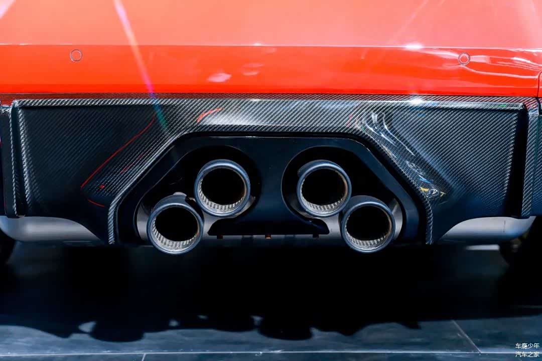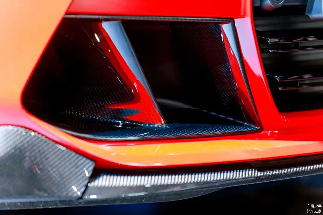 包括前脸从下包围、侧面风刀、外后视镜、侧翼子板、后扩散器等处都配备了碳纤维饰板,这种由干碳制成的饰板采用高压釜(AUTOCLAVE TECHNIQUE)技术,表面经过高亮抛光处理,强度高重量轻,韧性强不易变形,密度是湿碳的一百倍以上。
