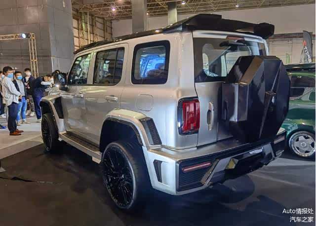 新车还将提供翼子板装饰件,车顶行李架,加宽轮眉,23英寸黑色轮毂,295/35 ZR23轮胎,高性能刹车套件,黑色大尾翼也是非常夸张,营造出不错的视觉效果,尾部的备胎罩也是仿造陨石形状,符合自身的定位,排气为中置双出式设计