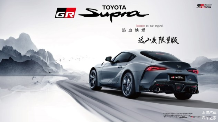 动力上,SUPRA远山灰限量版搭载了3.0T直列6缸发动机,最大功率250kw、最大扭矩500N·m,传动系统匹配8速手自一体变速箱。