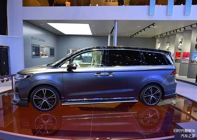 侧面来看,车身显得修长,腰线比较凌厉和突出,把车身一分为二,为了方便乘客上下车,新车采用对开门设计,后车窗也配备了隐私玻璃,底部则是双五辐式轮毂,整车显得很时尚。尾部灯组面积很大,中间有镀铬饰条进行连接,一体感很强,多线条分割下,看起来层次感很强。