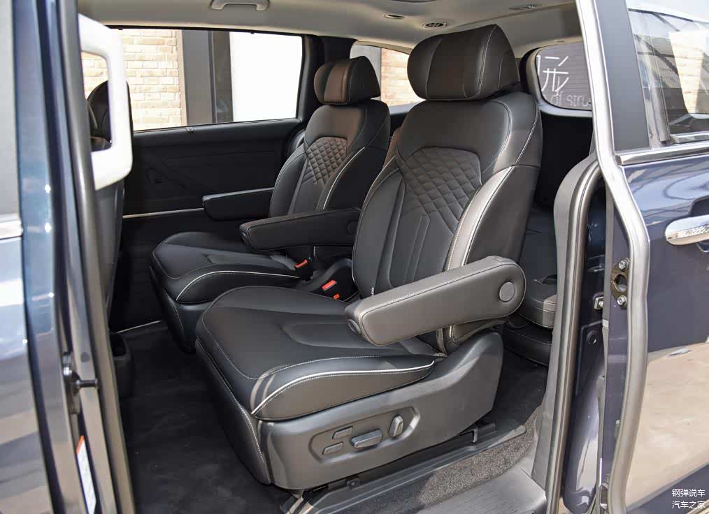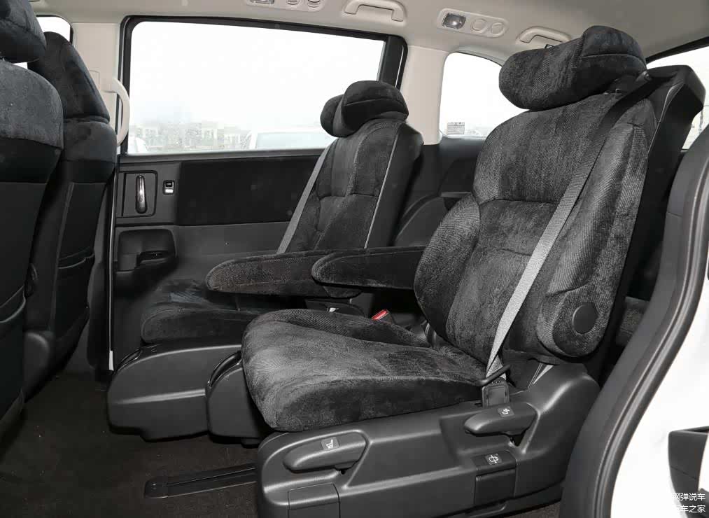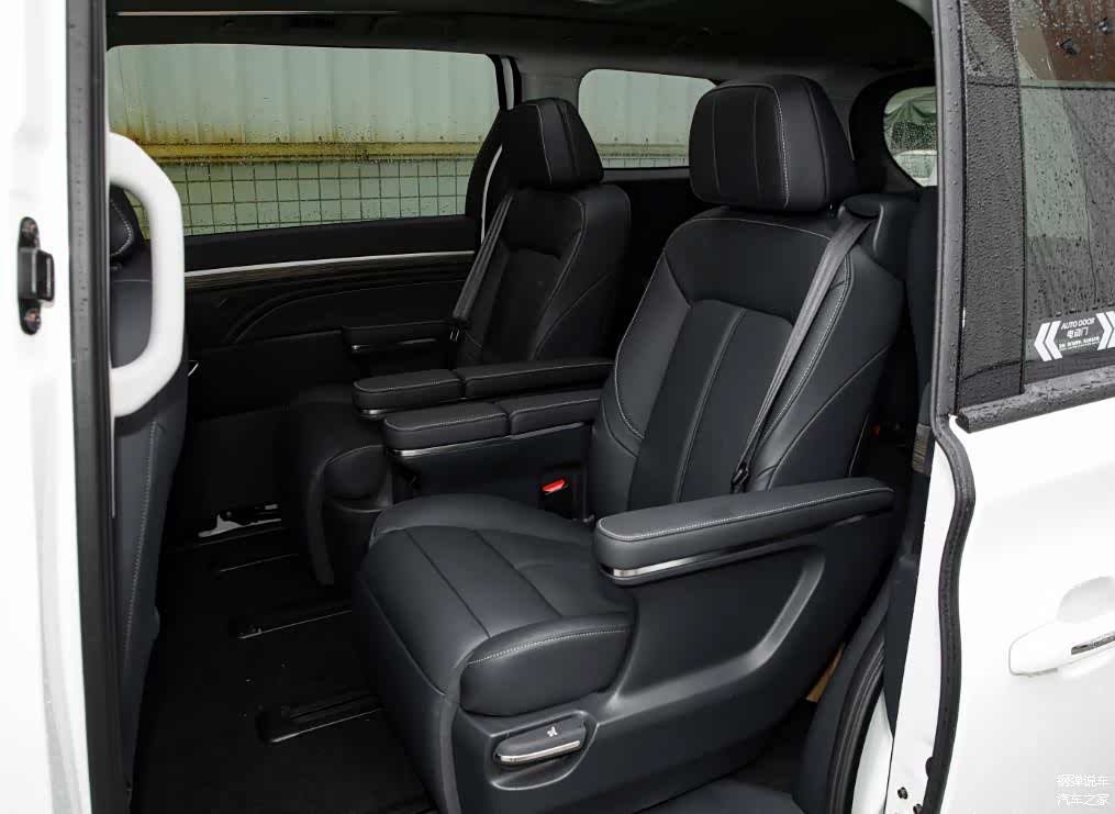 车内座椅是仿皮面料的,乘坐舒适性不错,前排和第二排均配有加热和通风功能,第二排座椅还可以前后、靠背、高低、腿托、左右调节,还有折叠小饭桌。座椅舒适配置比较全面。